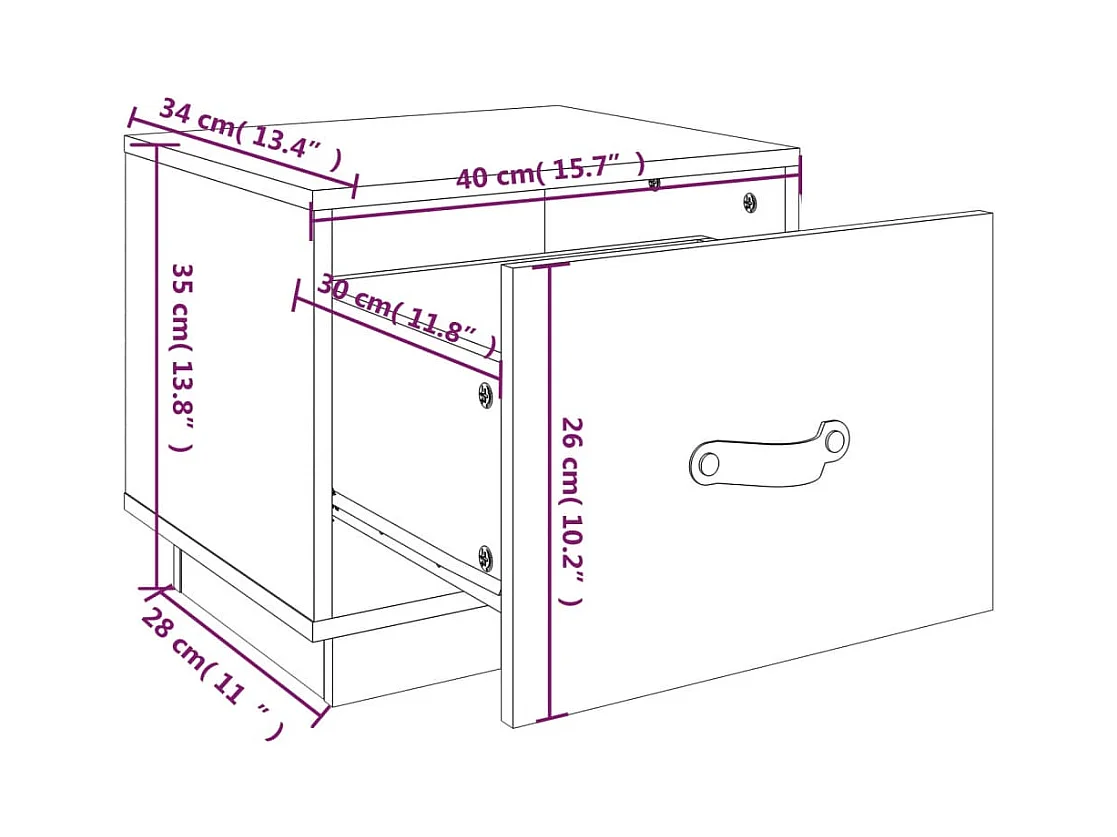 Nachtkastjes 2 st 40x34x35 cm massief grenenhout