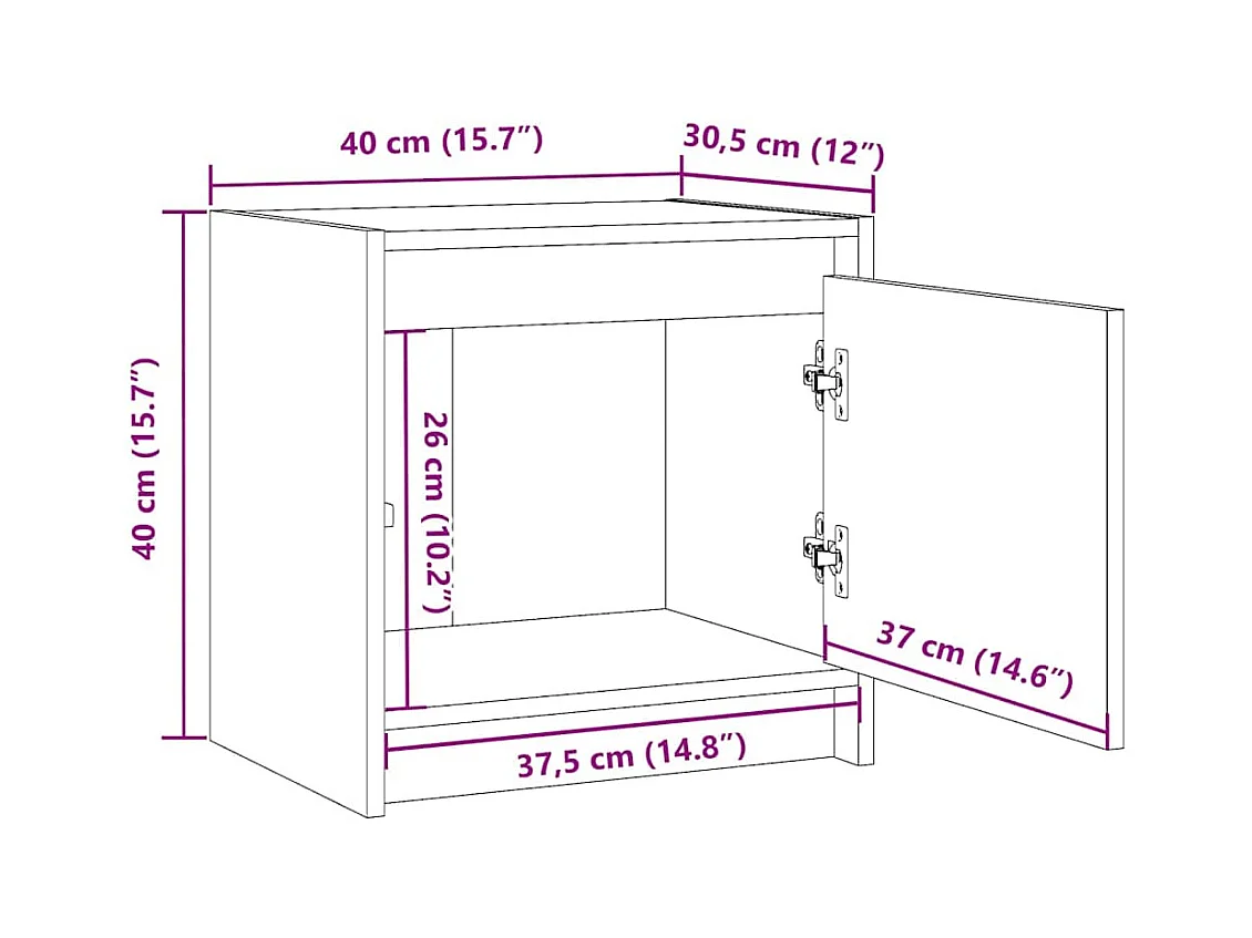 Nachtkastje van gerookt eikenhout 40x30x40 cm, bewerkt hout