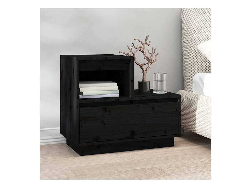 Zwart nachtkastje 30x60x60 cm Bewerkt hout