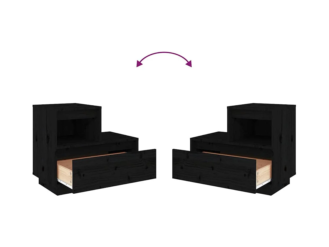Nachtkastjes 2 stuks Zwart 60x34x51 cm Massief grenenhout
