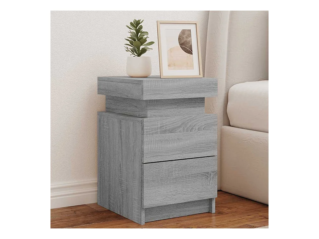 Nachtkastje met LED-verlichting bewerkt hout grijs sonoma