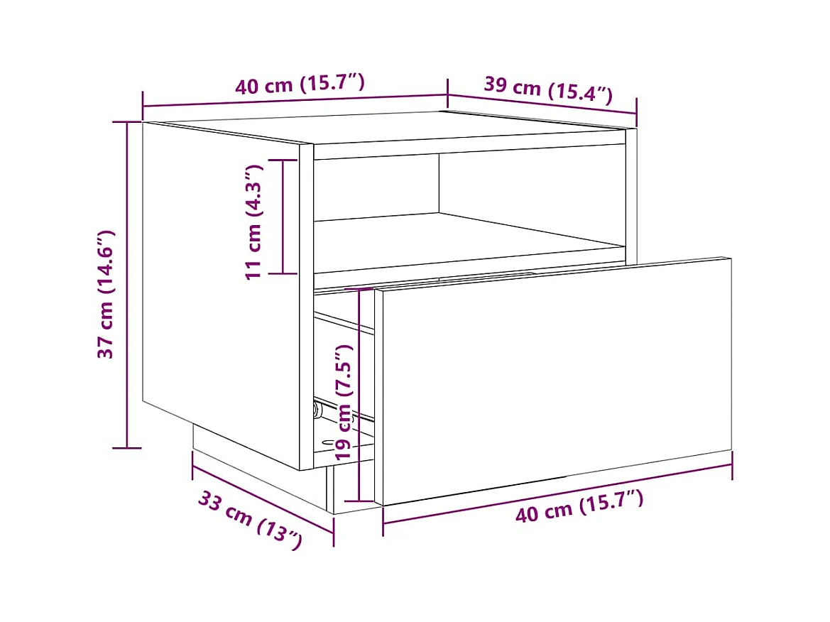 Nachtkastjes met LED-verlichting 2 st 40x39x37 cm wit