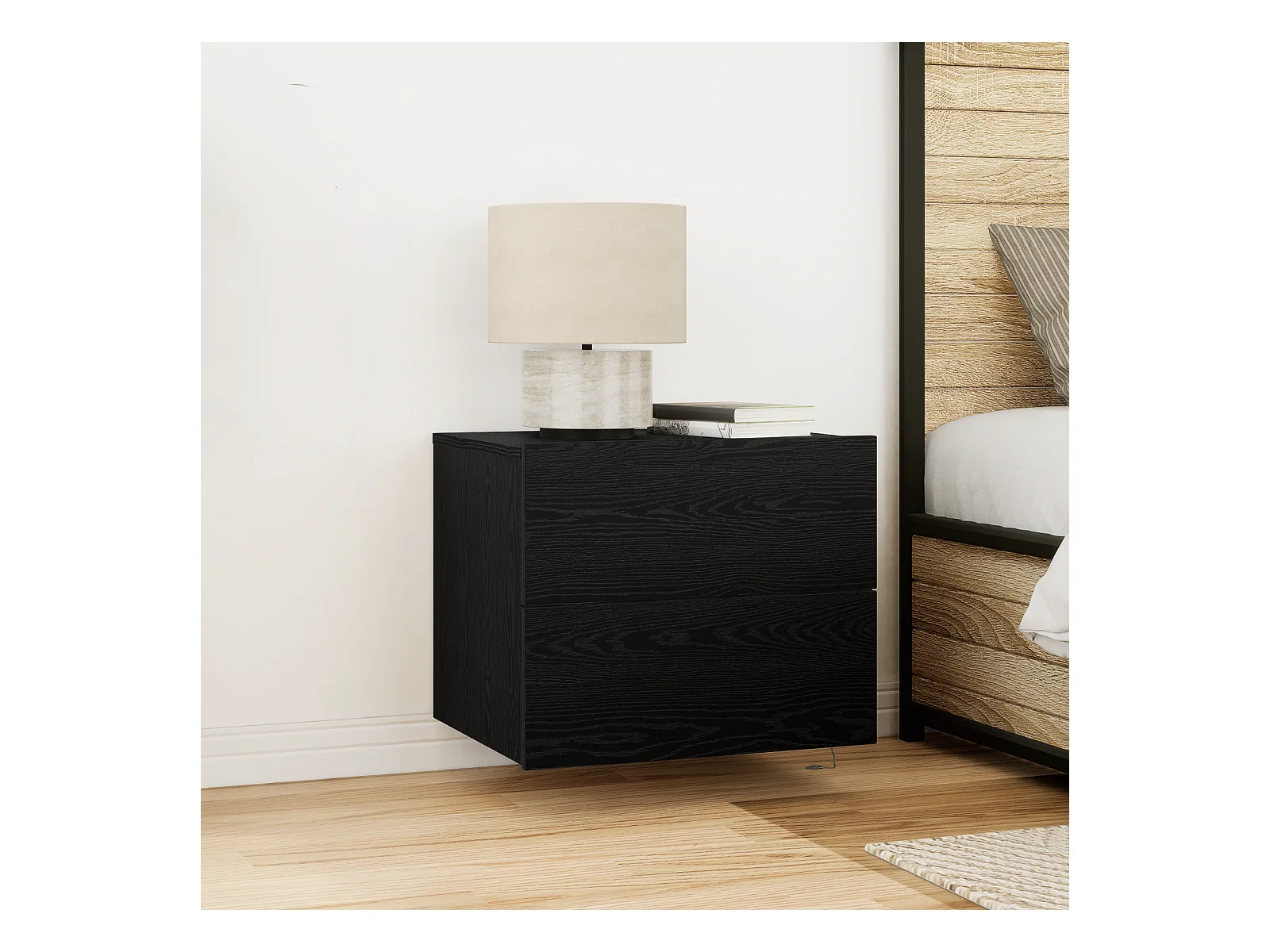 stuks zwarte wandgemonteerde nachtkastjes