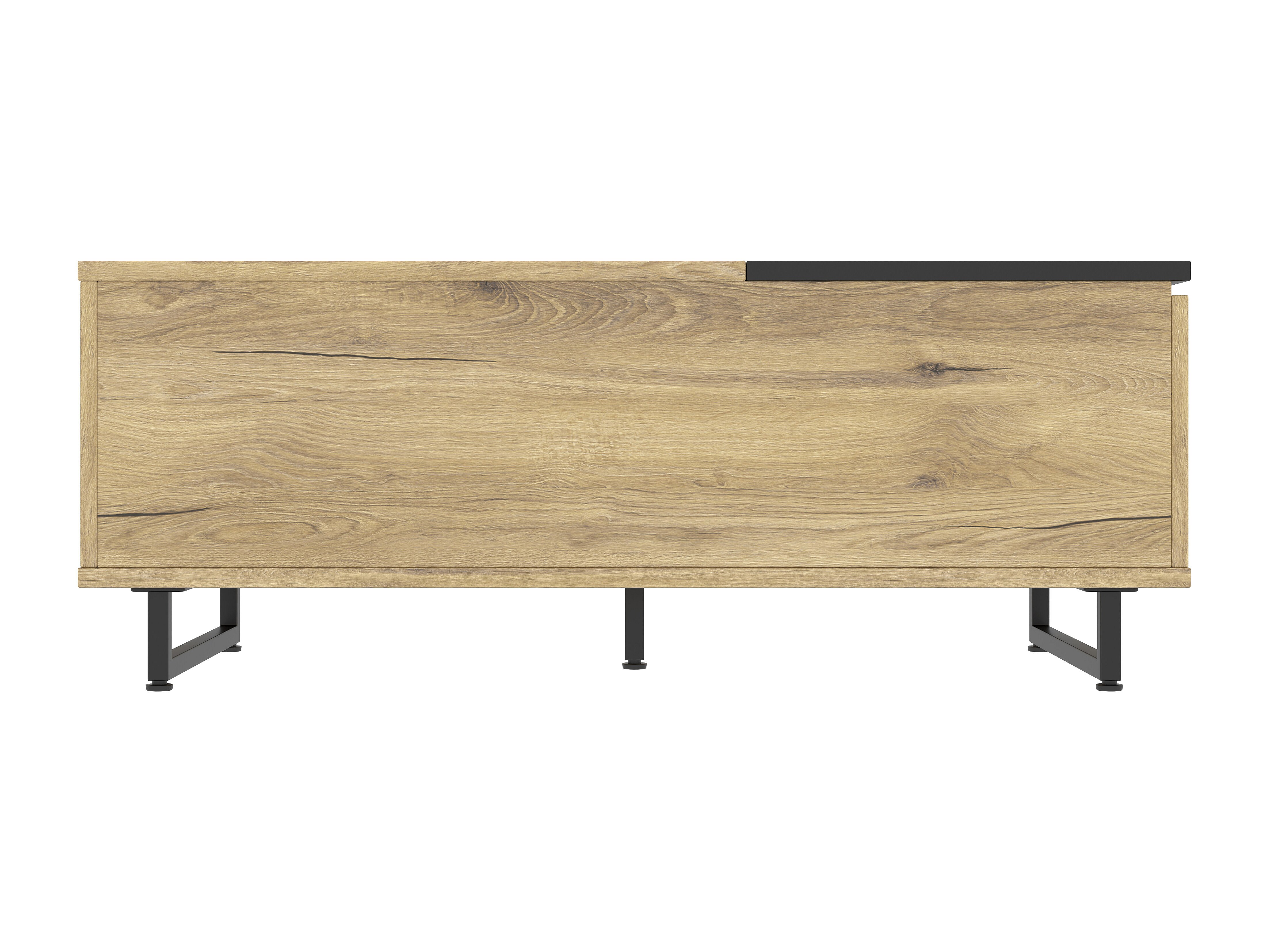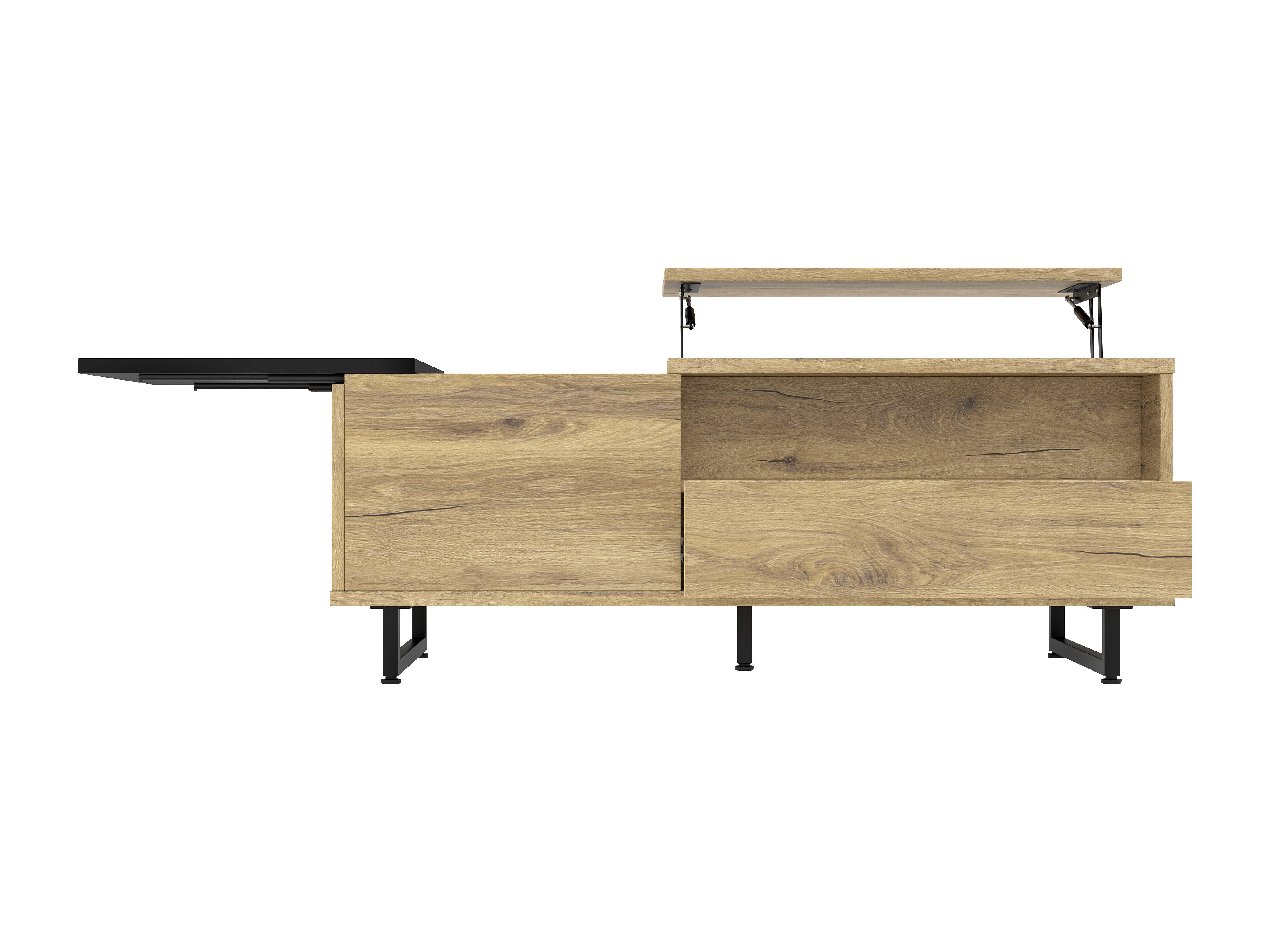 Natuurlijke en zwarte opklapbare salontafel met LED-verlichting, lade en opbergruimte 103,5x50x30cm
