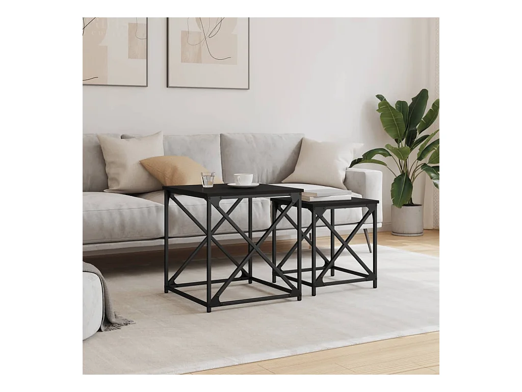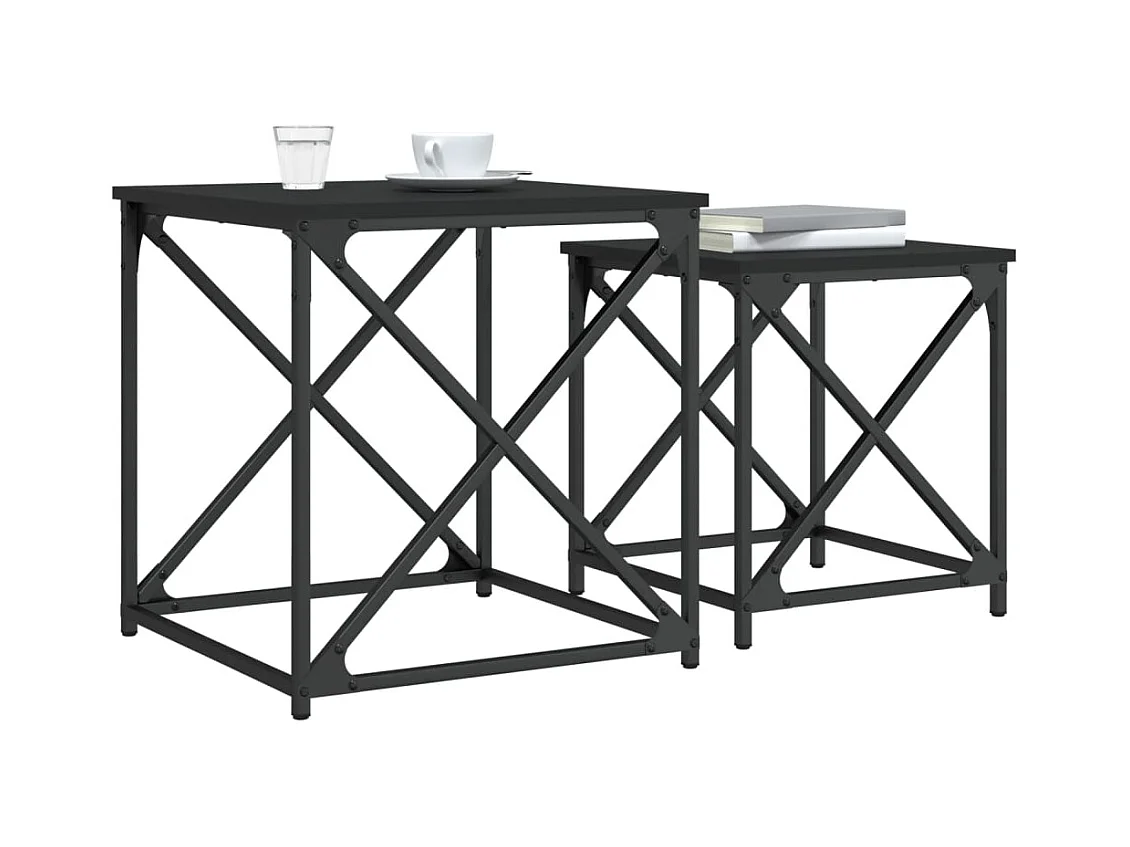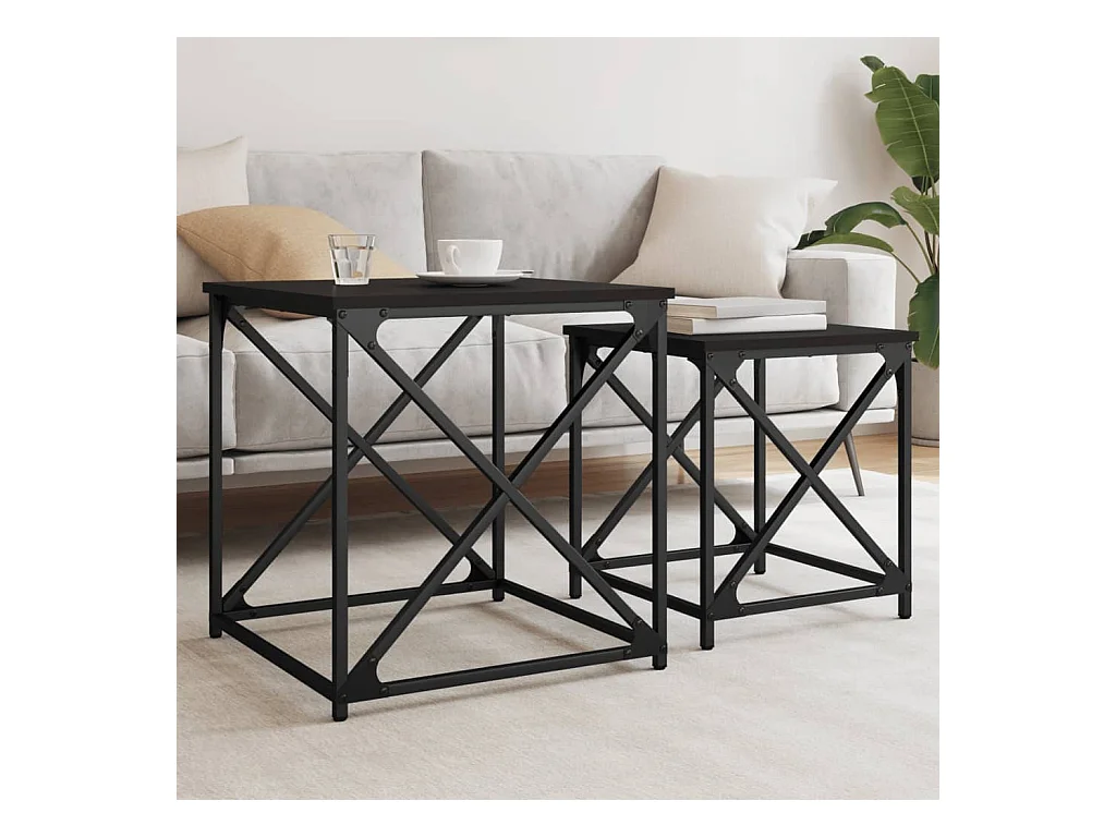 Nestbare salontafels 2 stuks zwart bewerkt hout