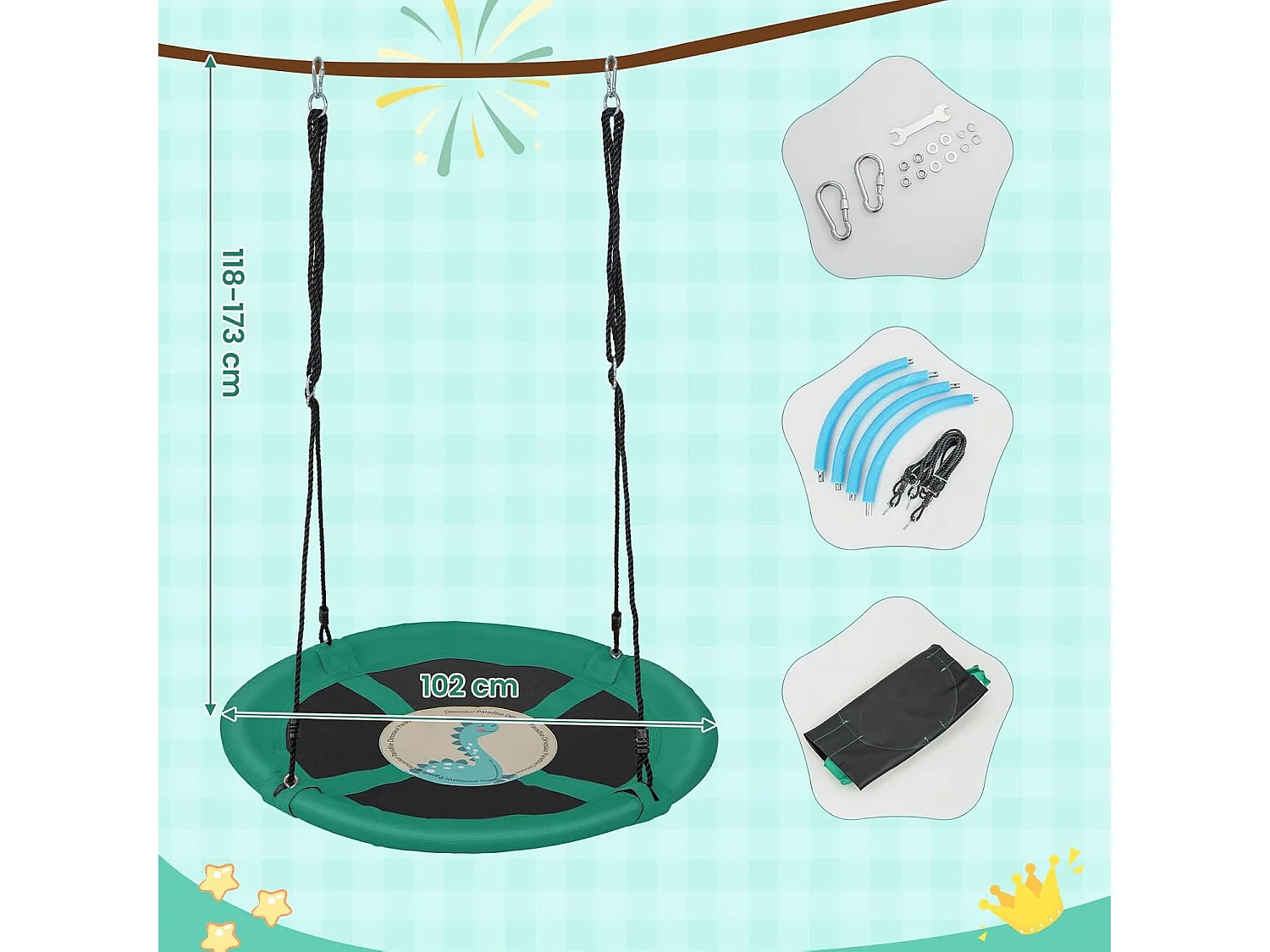 Nestschommel, kinderschommel, boomschommel, hangschommel, ronde schommel voor binnen en buiten, schommel voor kinderen en volwassenen, Ø 100 cm (groen) ZB33492