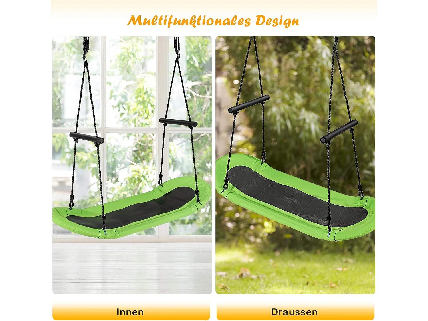 Nestschommel, ovaal, skateboardschommel met handgrepen, kinderschommel, outdoor meerkinderschommel, boomschommel,voor kinderen en volwassenen (groen) ZB33886