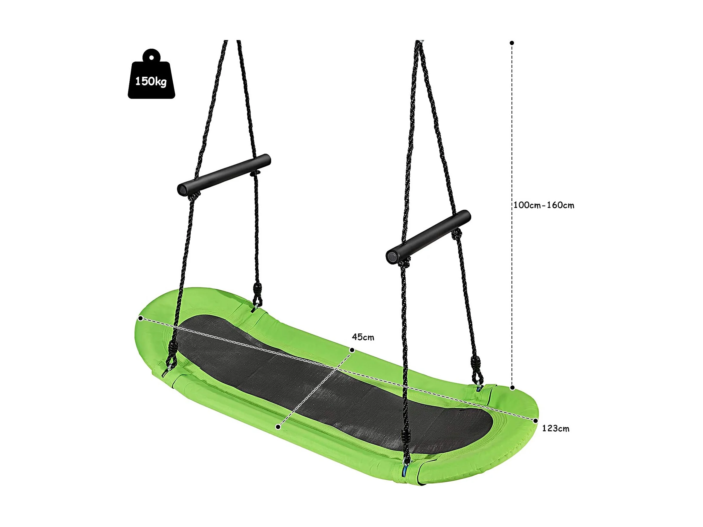 Nestschommel, vierkant,150 x 80 cm, boomschommel met 100-180 cm verstelbaar touw, kinderschommel, outdoor tuinschommel voor kinderen en volwassenen (groen) ZB33885