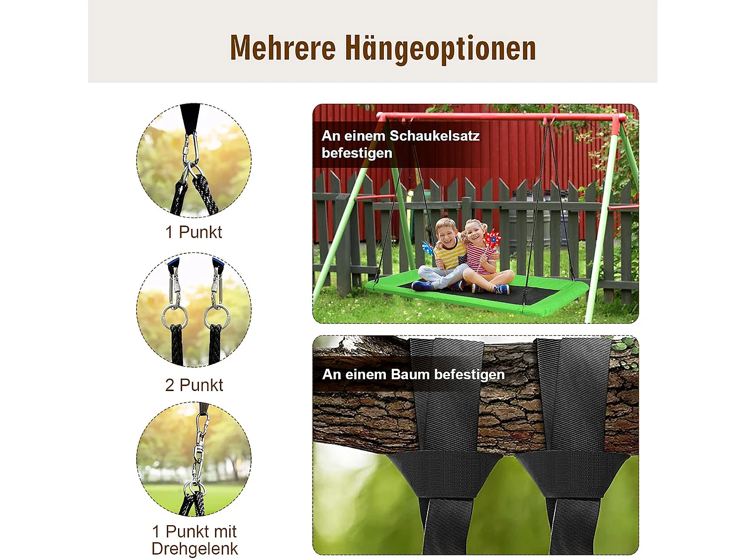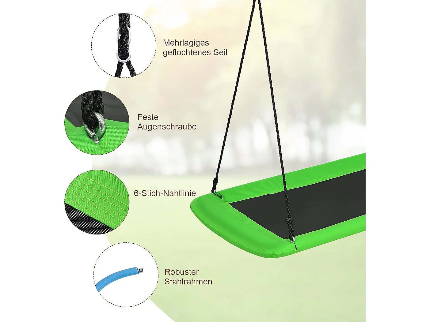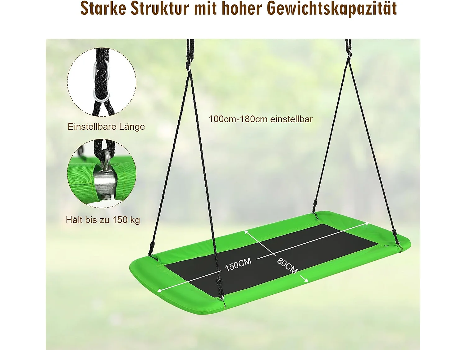Nestschommel, vierkant,150 x 80 cm, boomschommel met 100-180 cm verstelbaar touw, kinderschommel, outdoor tuinschommel voor kinderen en volwassenen (groen) ZB33885
