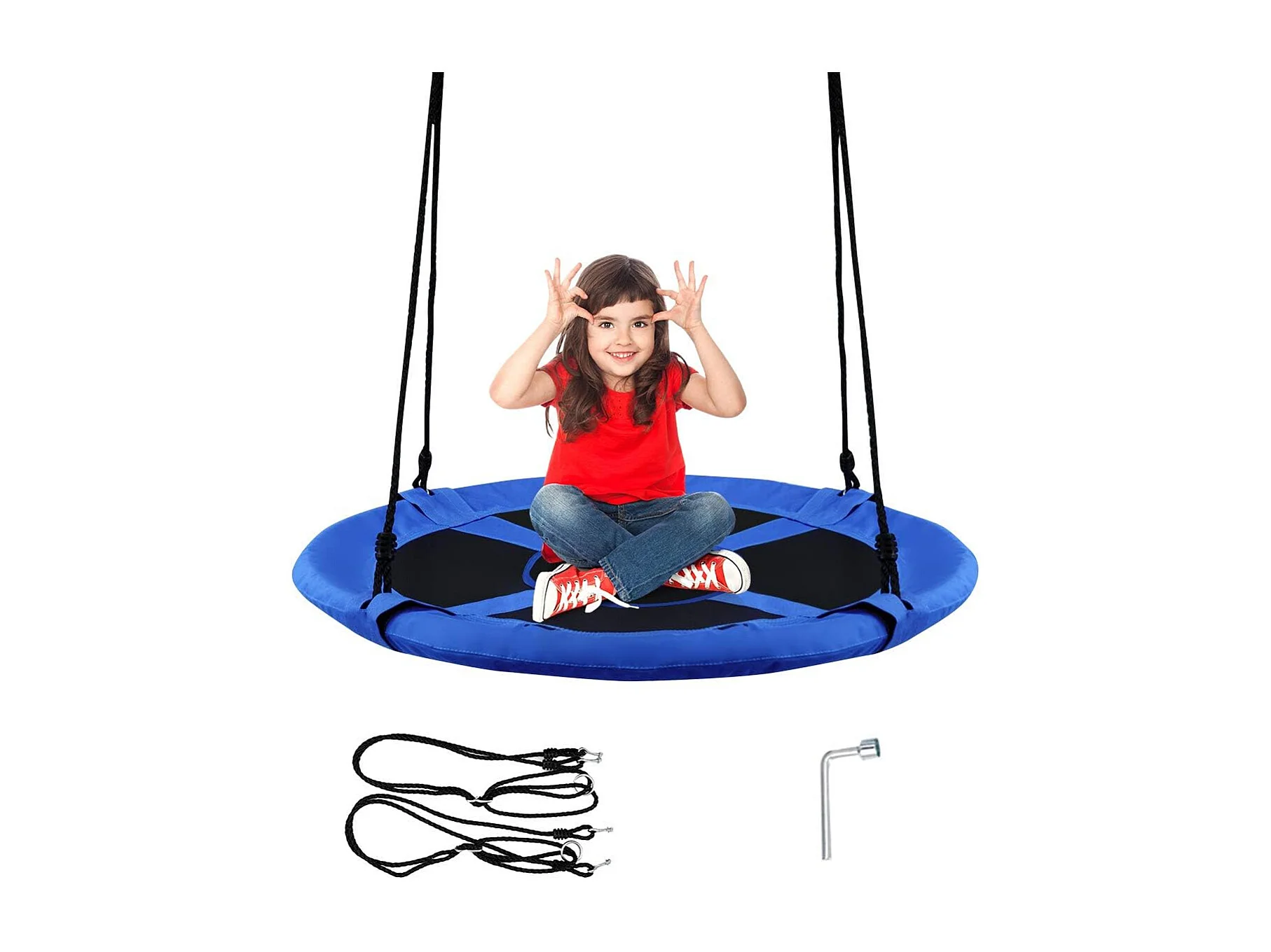 Nestschommel, kinderschommel,boomschommel,hangschommel,ronde schommel voor binnen en buiten, schommel voor kinderen en volwassenen, Ø 100 cm (blauw-raket) ZB33594