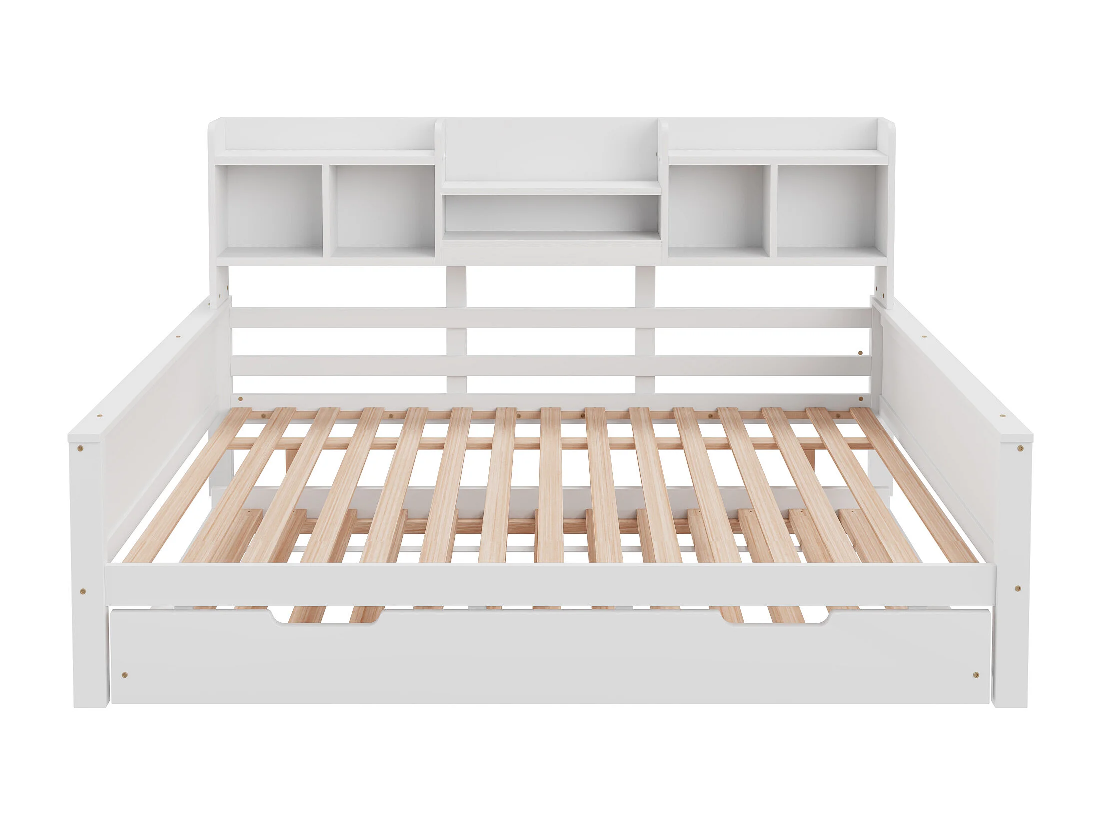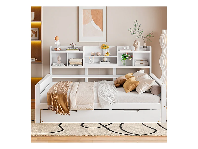 Nestslaapbank 140x200 cm - Nestbed 90x190 cm - met opbergruimte - lattenbodem - massief grenen - wit (matras niet inbegrepen)