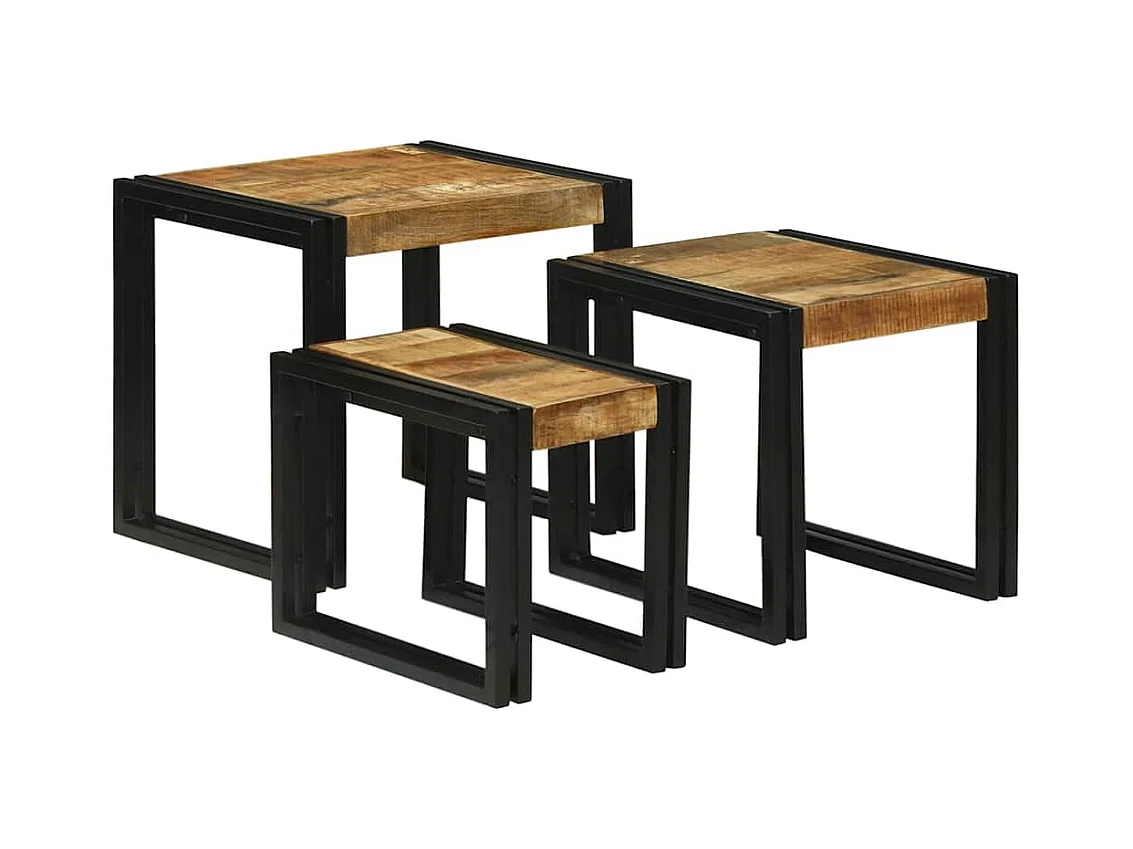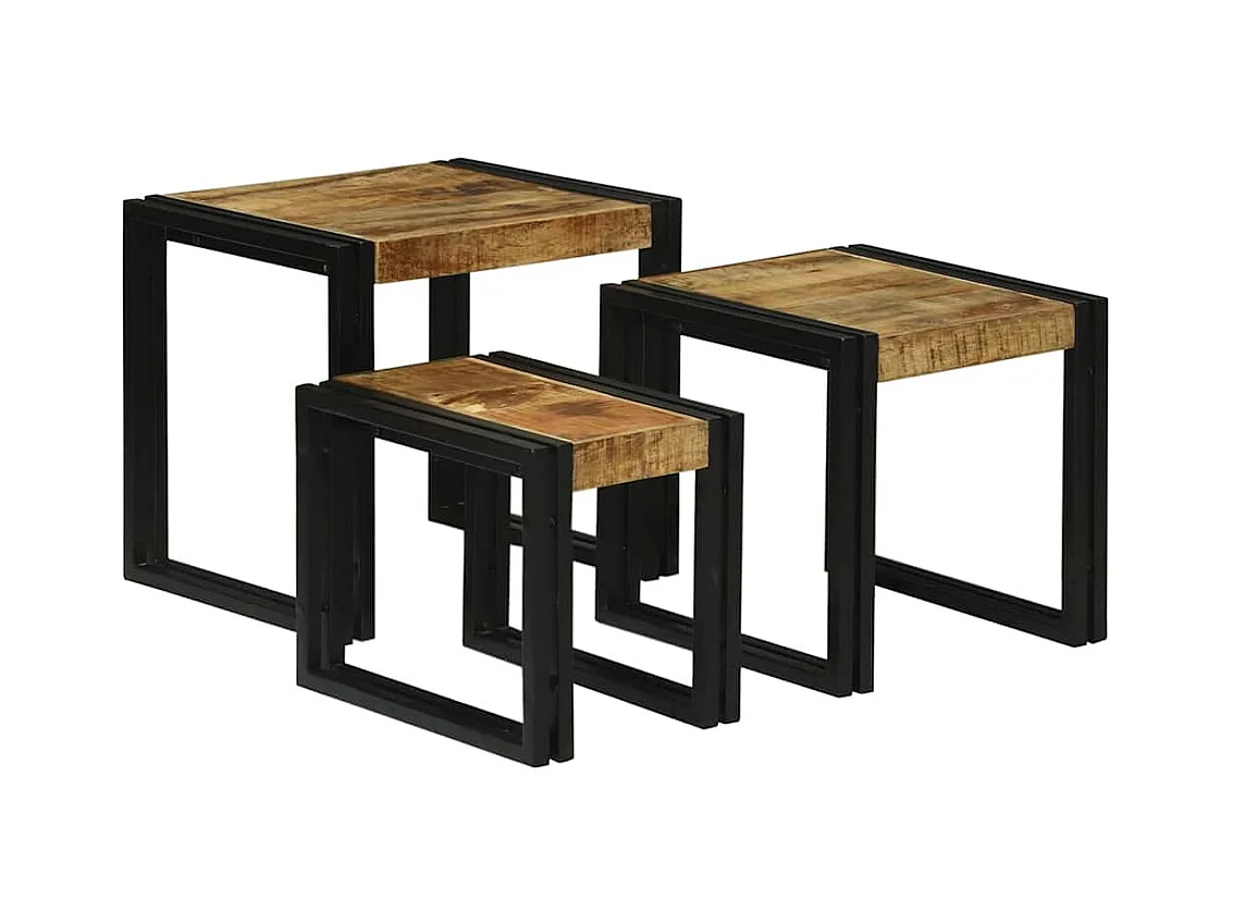 Nesttafel 3 stuks Bruin en zwart massief ruw mangohout