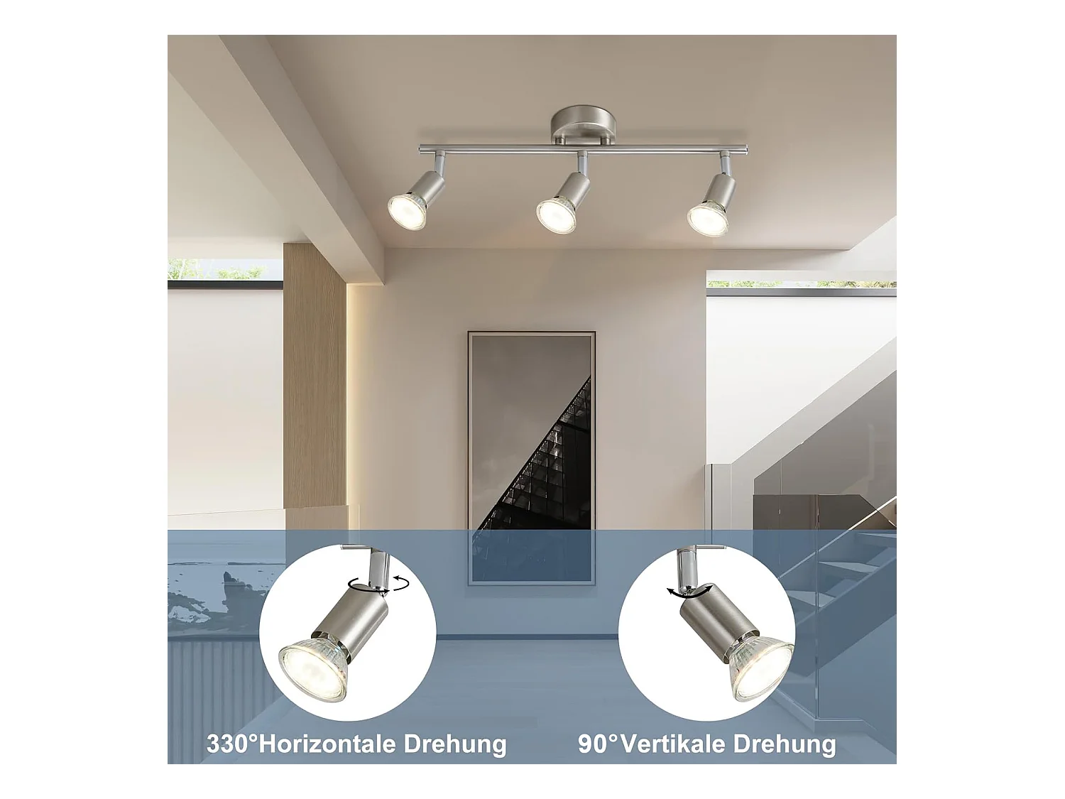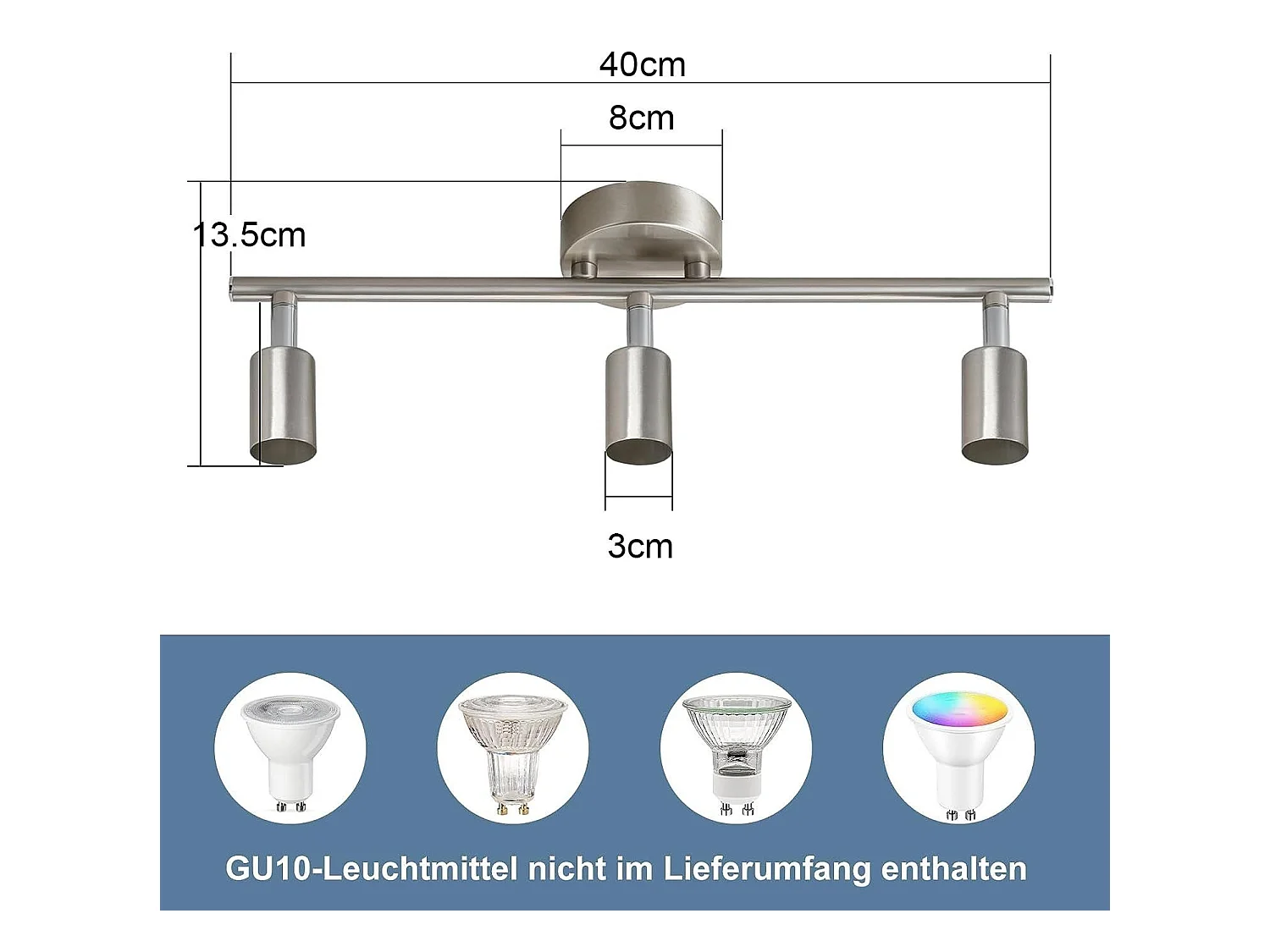 NETTLIFE Opbouwspot - plafondspot met 3 lichtpunten - spots - zilver Plafondlamp - L 40 cm - draaibar - kantelbaar - GU10 fitting - plafoniere - excl. GU10