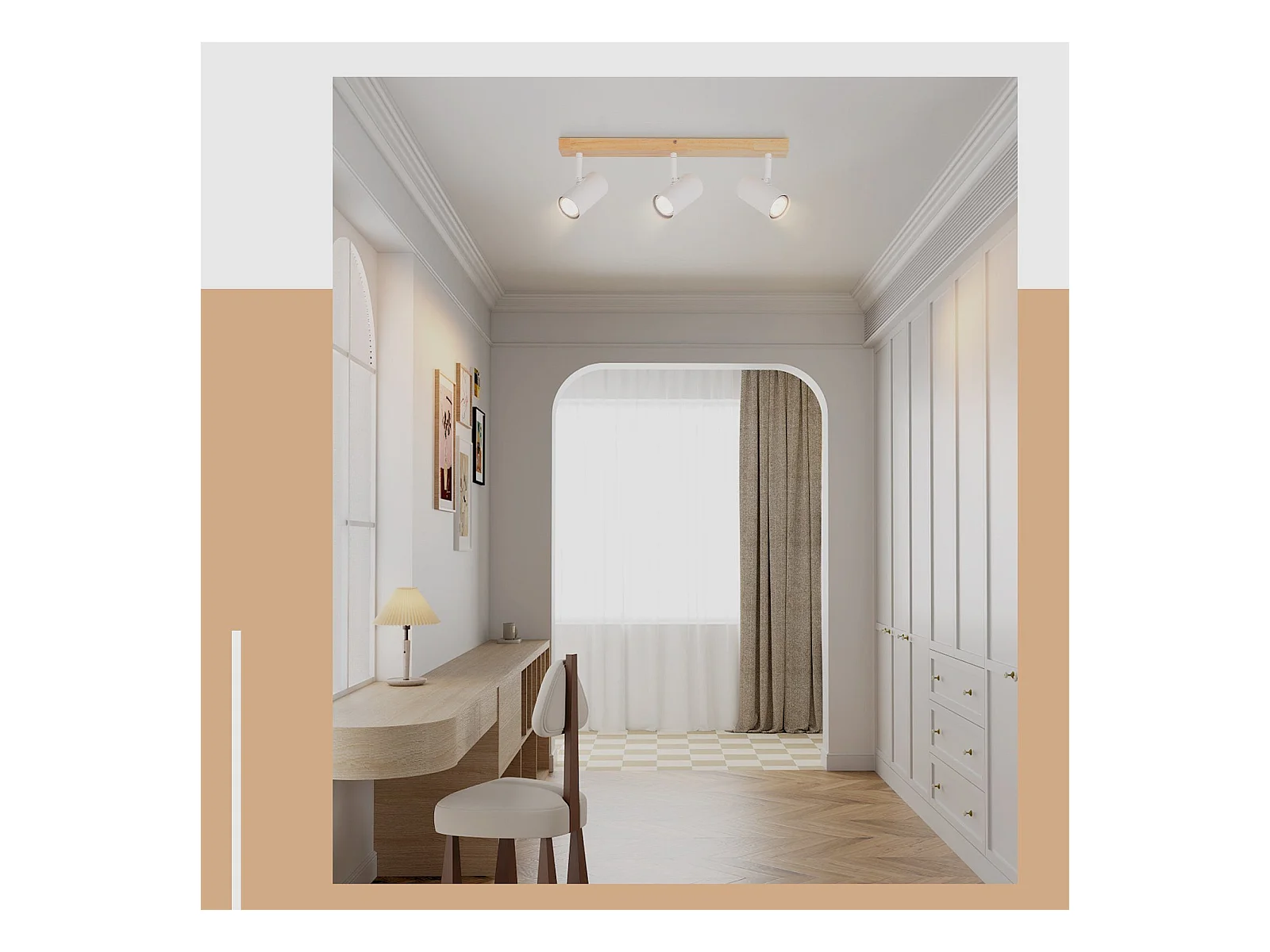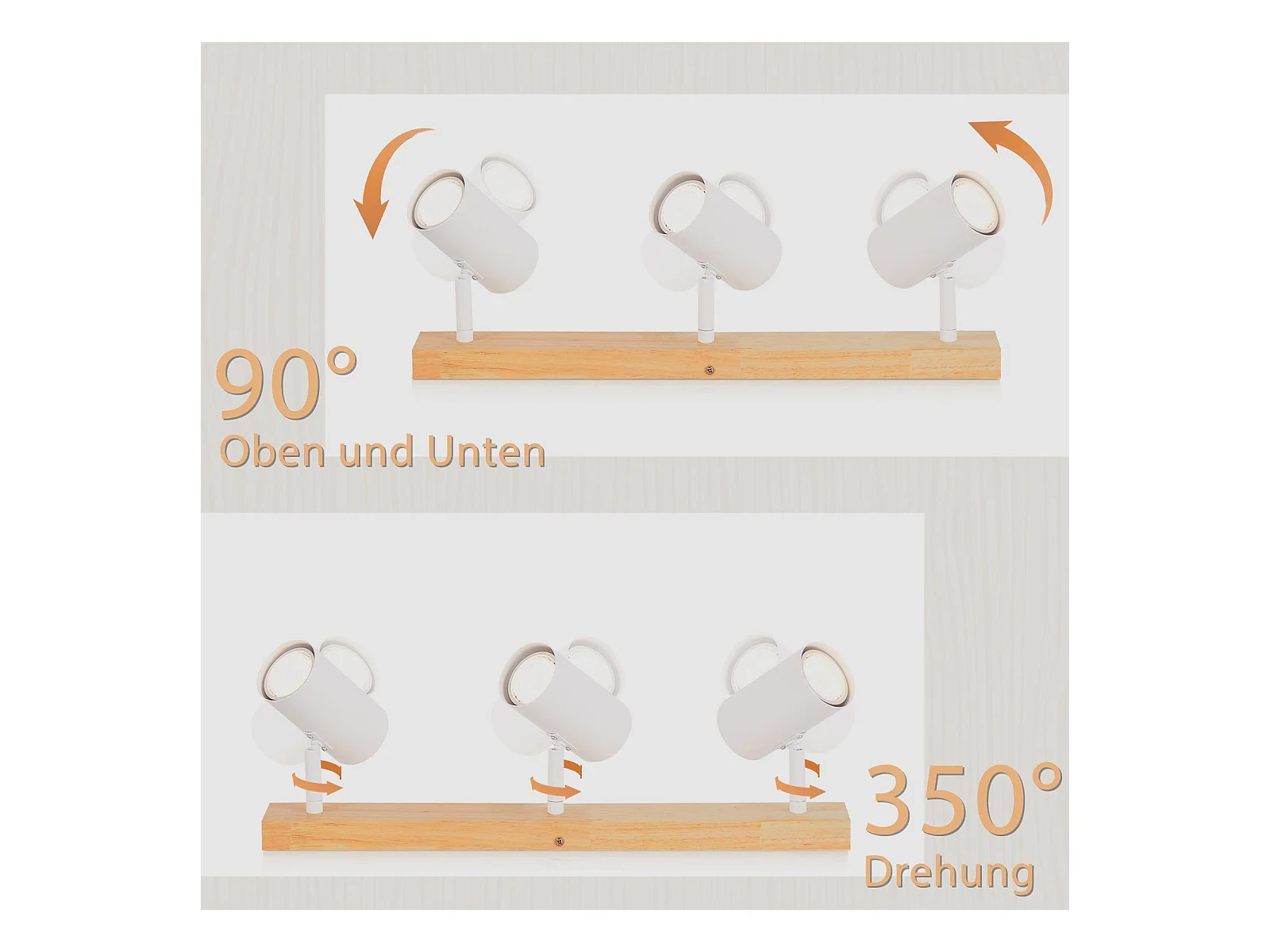 NETTLIFE 3 Vintage GU10 Moderne Plafondspots in Wit Hout, 350° Draaibaar voor Slaapkamer, Woonkamer, Kantoor, Eetkamer, Keuken