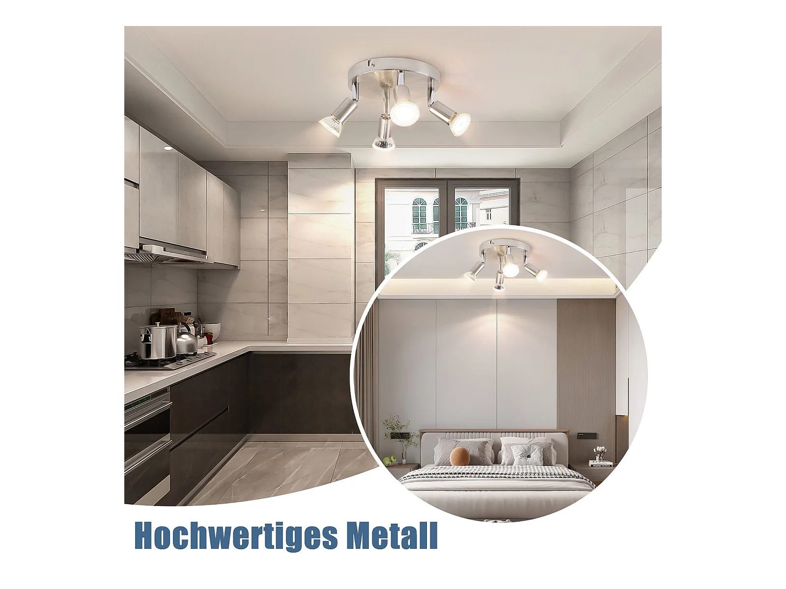 NETTLIFE Opbouwspot - rond - 4-Lichts - GU10 Fitting - nikkel - Moderne Plafondlamp - Plafondspot - voor Hal | Slaafkamer | Kantoor | Woonkamer - Zonder Lichtborn