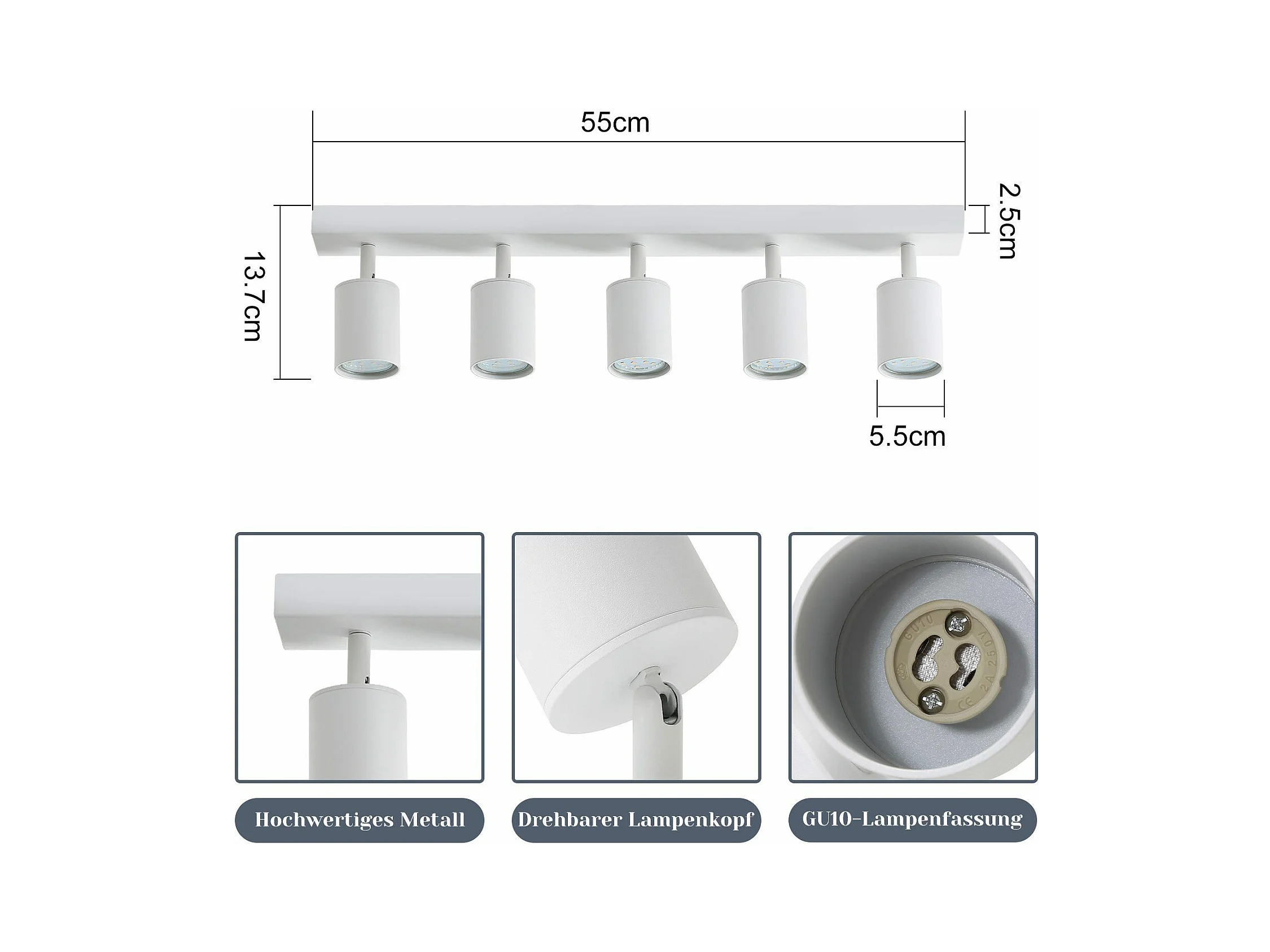 NETTLIFE Opbouwspot - plafondspot met 6 lichtpunten - spots - WIt Plafondlamp - L 76.5 cm - draaibar - kantelbaar - GU10 fitting - plafoniere - excl. GU10