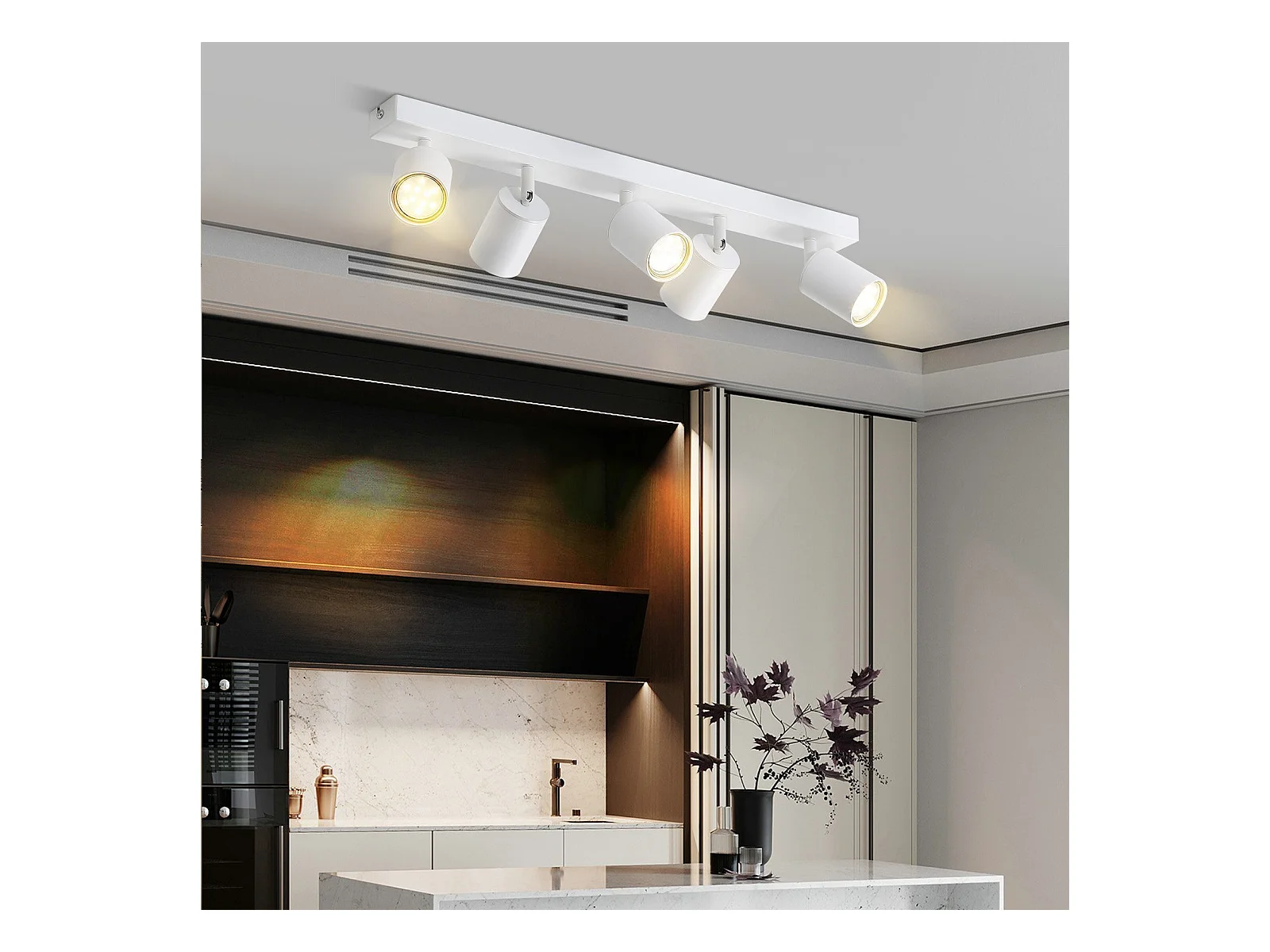 NETTLIFE 5-pack GU10 witte LED-plafondspots, 330° draaibare vlamvormige moderne industriële wandlamp voor woonkamer/slaapkamer (zonder lamp)