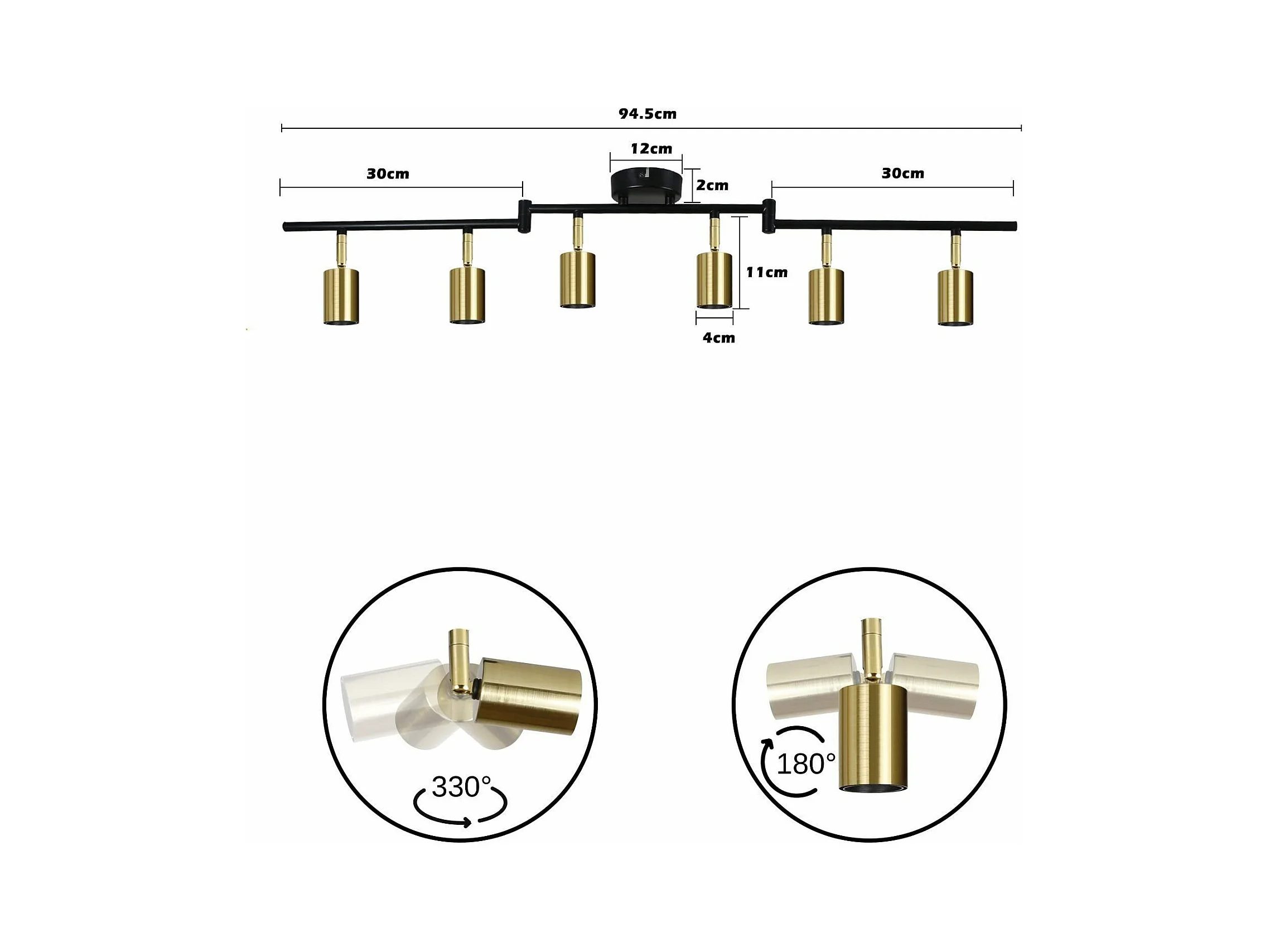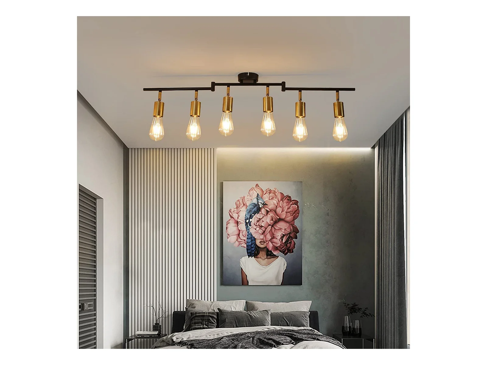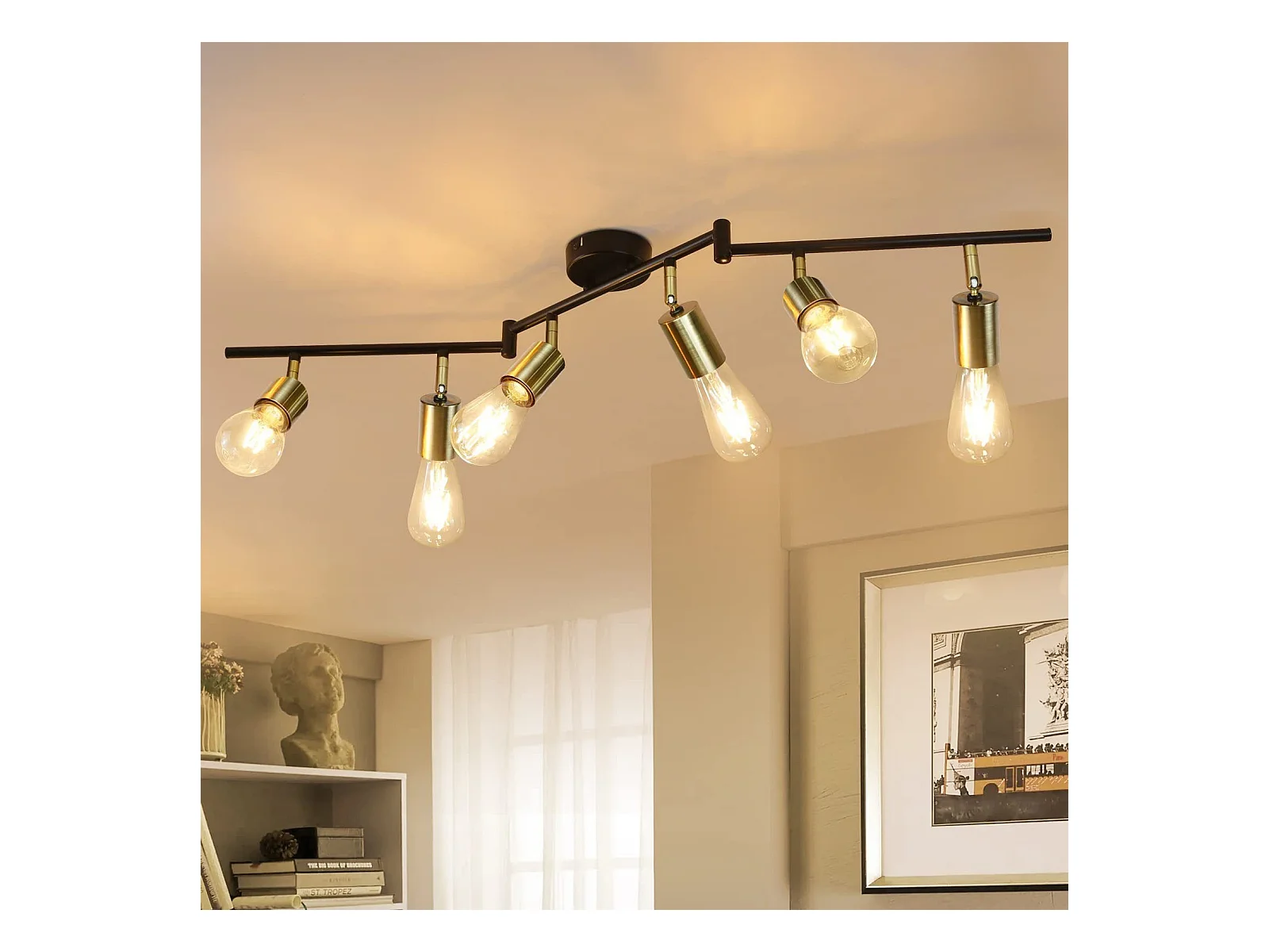 NETTLIFE Opbouwspot 6-lichts zwart goud E27 Fitting draaibar Plafondspot Vintage Keukenlamp Max. 25W Metaal voor Slaapkamer Hal Woonkamer Zonder Lichtborn L 94.5cm