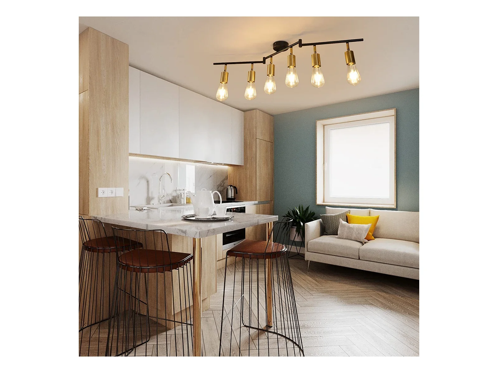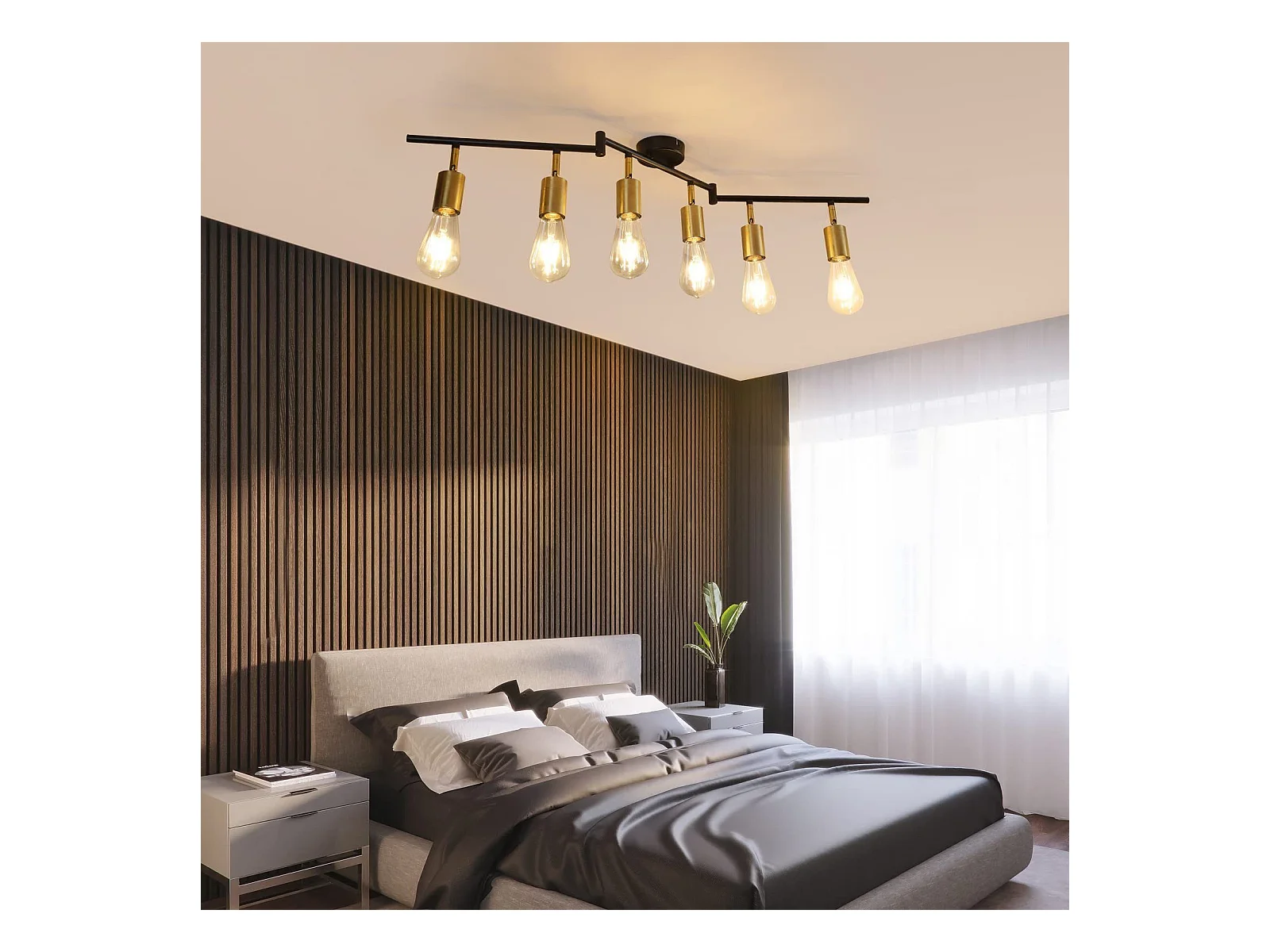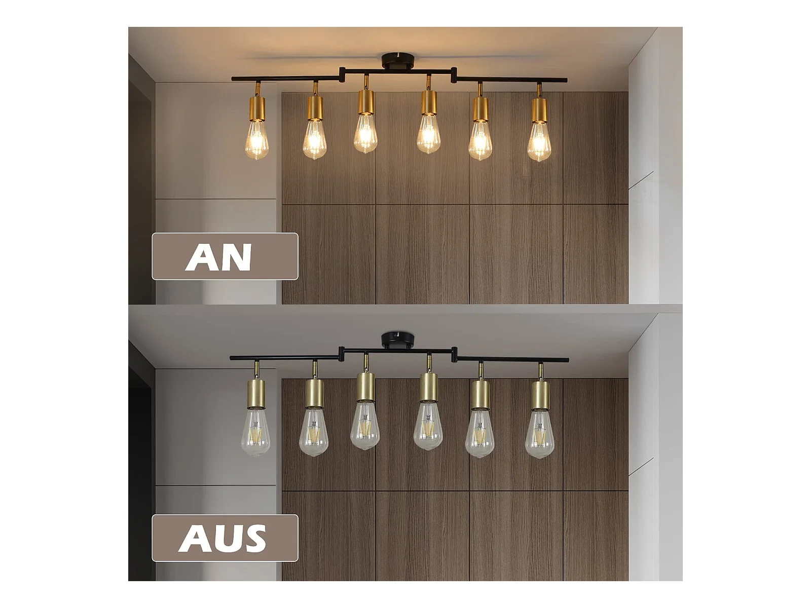 NETTLIFE Opbouwspot 6-lichts zwart goud E27 Fitting draaibar Plafondspot Vintage Keukenlamp Max. 25W Metaal voor Slaapkamer Hal Woonkamer Zonder Lichtborn L 94.5cm