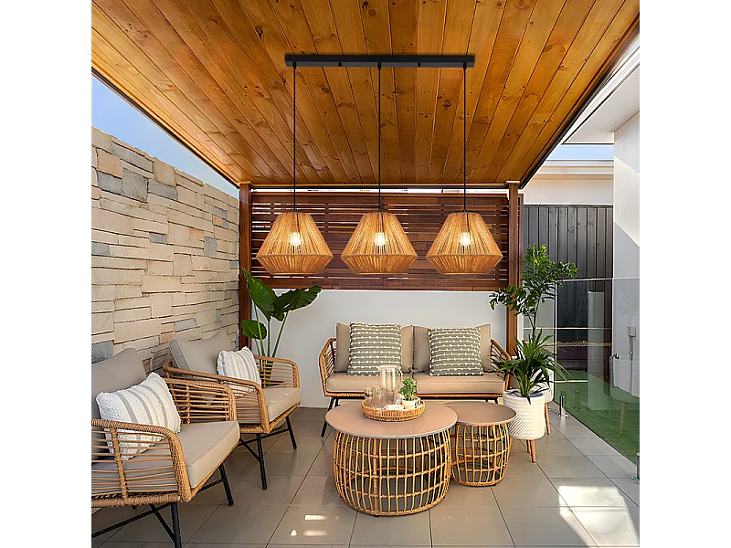 Nettlife Boho Rotan Hanglamp voor Eettafel - 3 E27 Lampen, Verstelbare Hoogte, Retro Stijl, Woonkamer/Slaapkamer (Lampen Niet Inbegrepen)