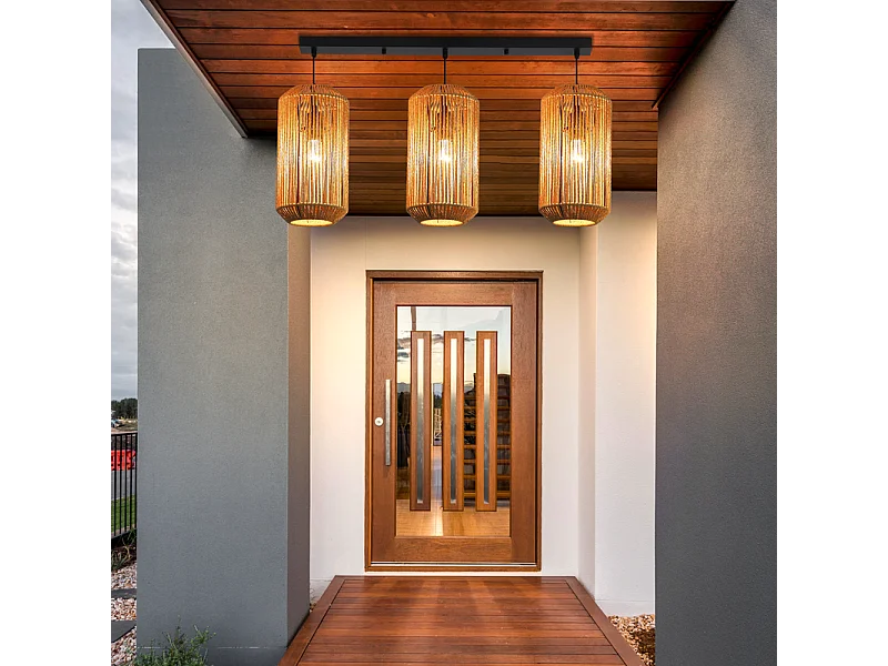 Nettlife Boho Rotan Hanglamp voor Eettafel - 3 E27 Lampen, Verstelbare Hoogte, Retro Stijl, Woonkamer/Slaapkamer (Lampen Niet Inbegrepen)