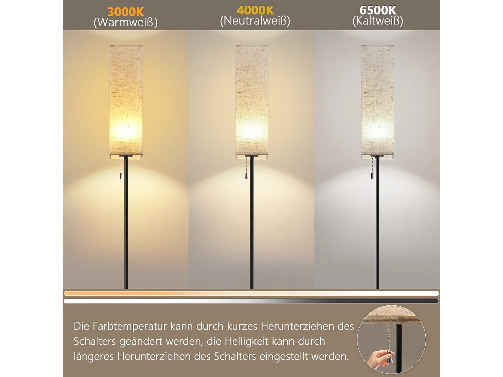 NETTLIFE Dimbare LED-vloerlamp met retro stoffen kap voor woonkamer met trekschakelaar