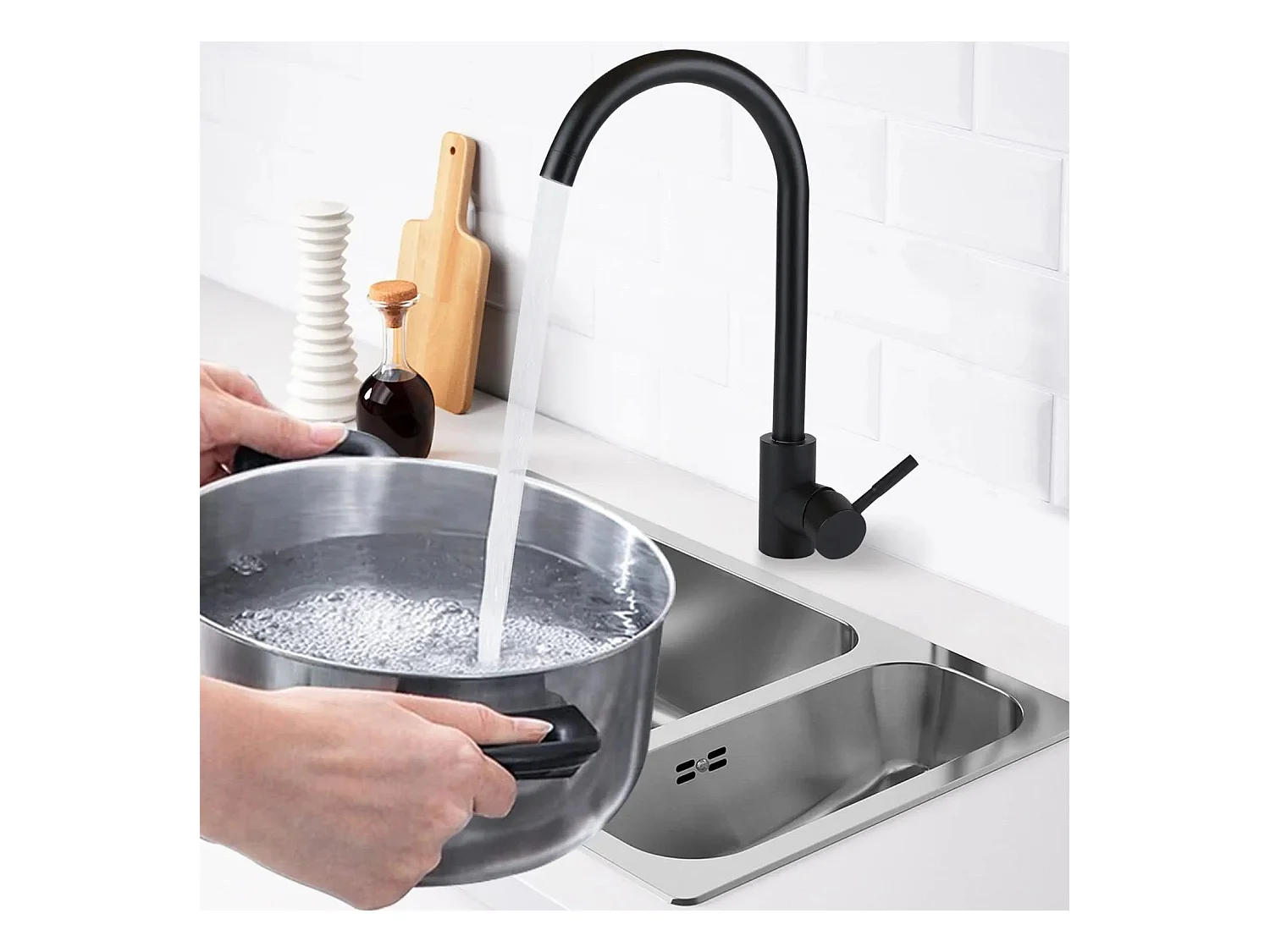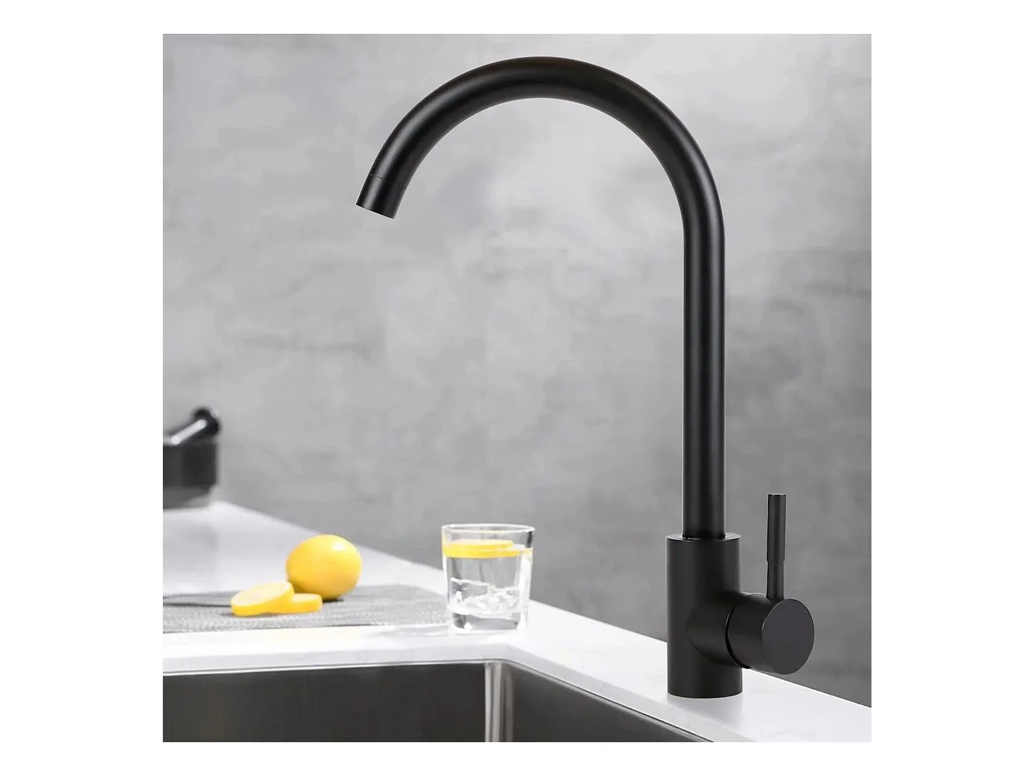 NETTLIFE Keukenkraan met unieke zwarte greep, 360° draaibare, flexibele en draaibare RVS mengkraan voor keukenwasbak