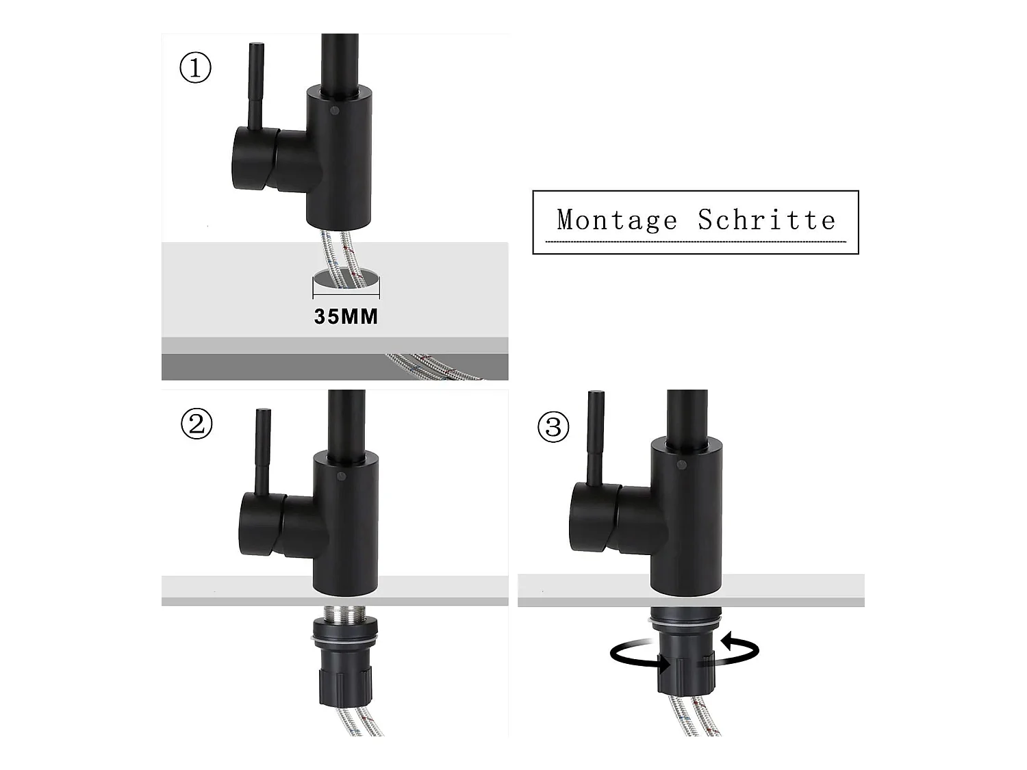 NETTLIFE Keukenkraan met flexibele lange uitbreidbare slang met douchekop, 46,5 cm, zwart, 360 graden draaibare hoge druk mengkraan