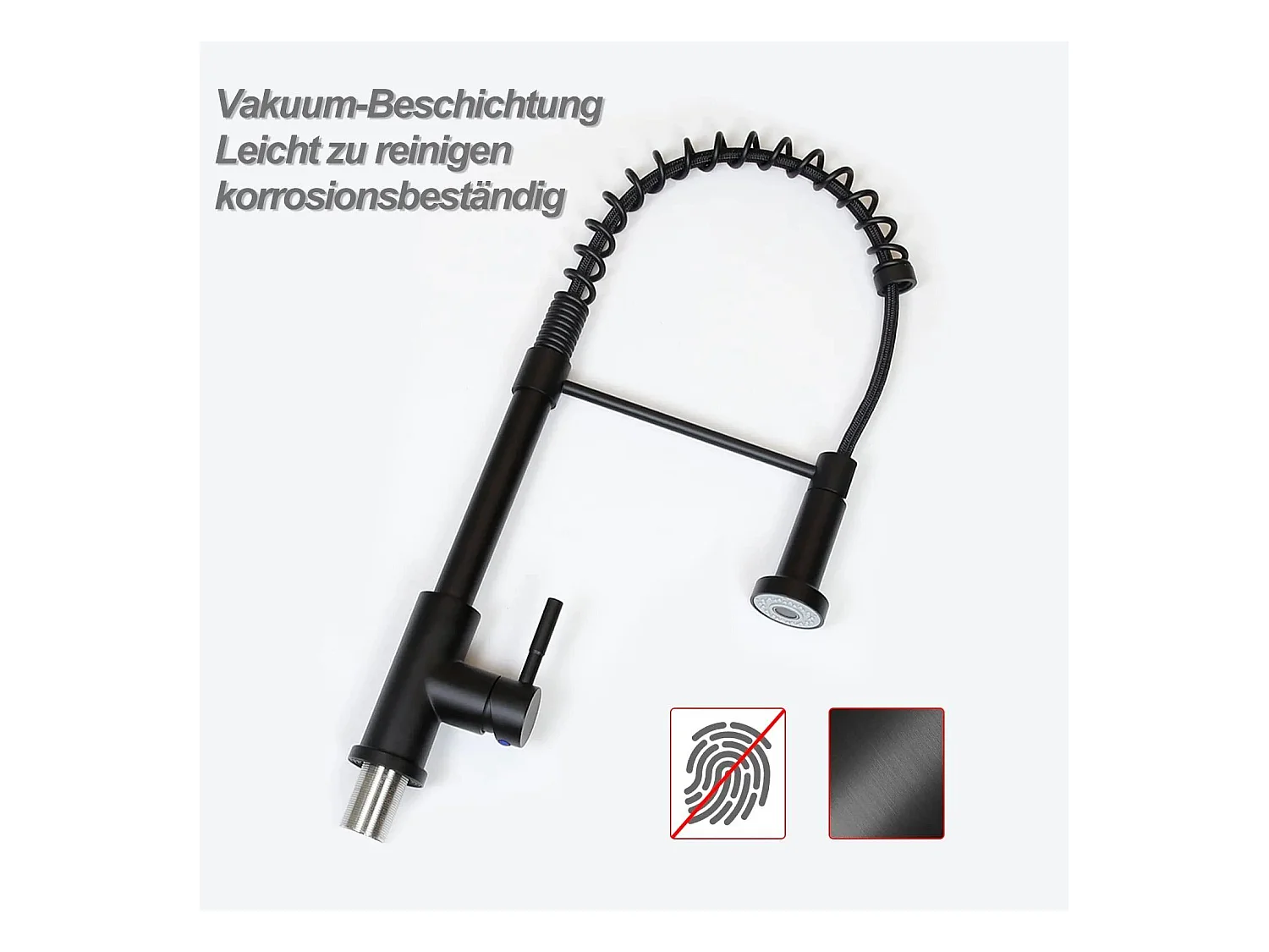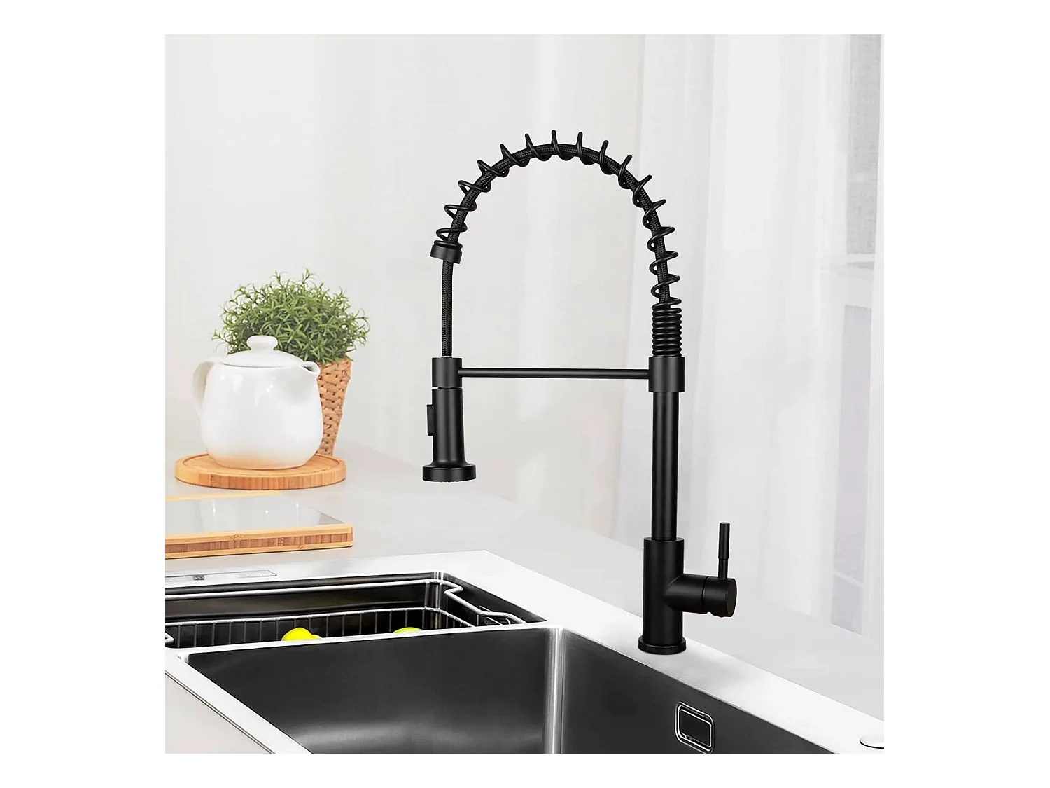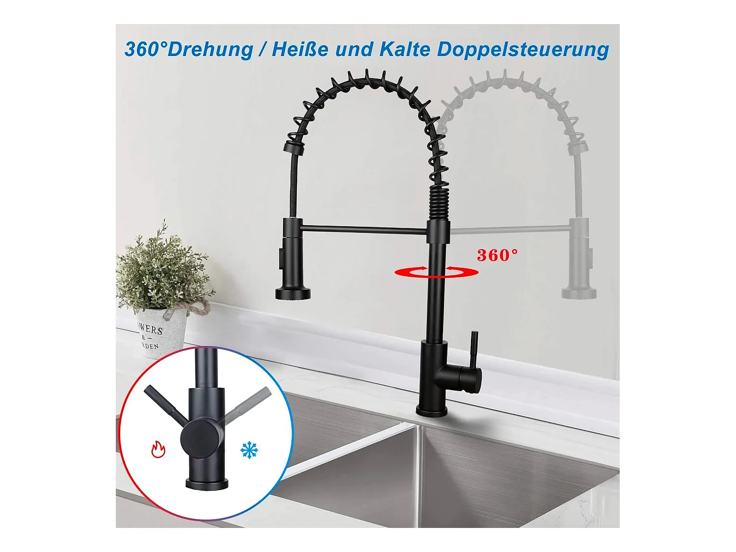 NETTLIFE Keukenkraan met uittrekbare douchekop, hoge druk, dubbele straal en 360° draaibare zwarte roestvrijstalen kraan