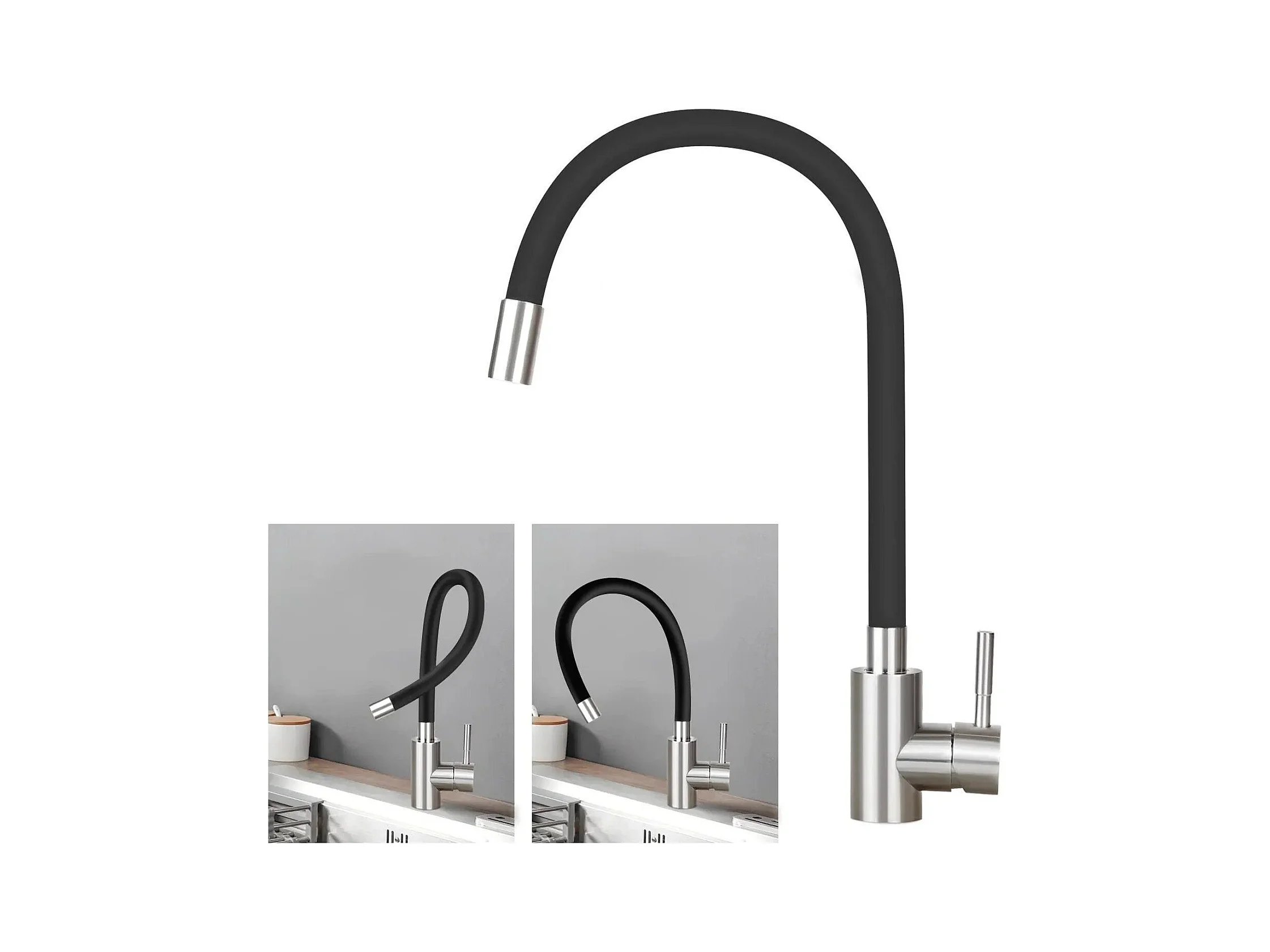 NETTLIFE Keukenkraan met unieke zwarte greep, 360° draaibare, flexibele en draaibare RVS mengkraan voor keukenwasbak