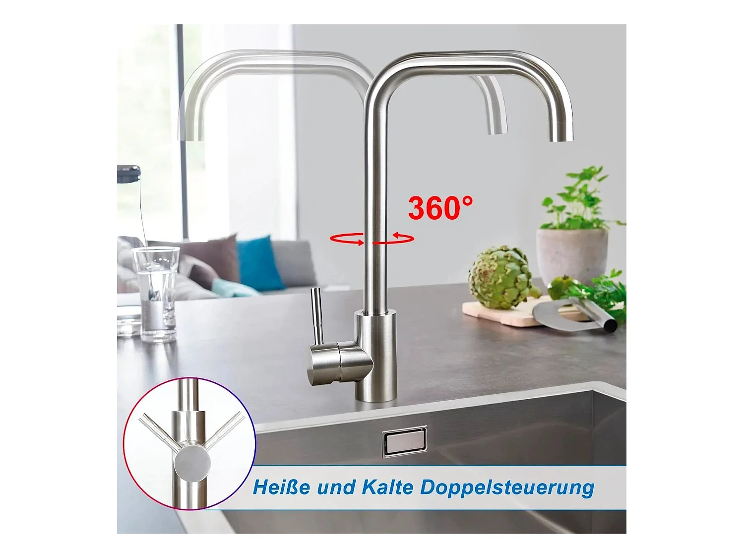 NETTLIFE Keukenkraan, RVS mengkraan met unieke greep, hoge druk, 360 ° draaibare keukenkraan, nikkel