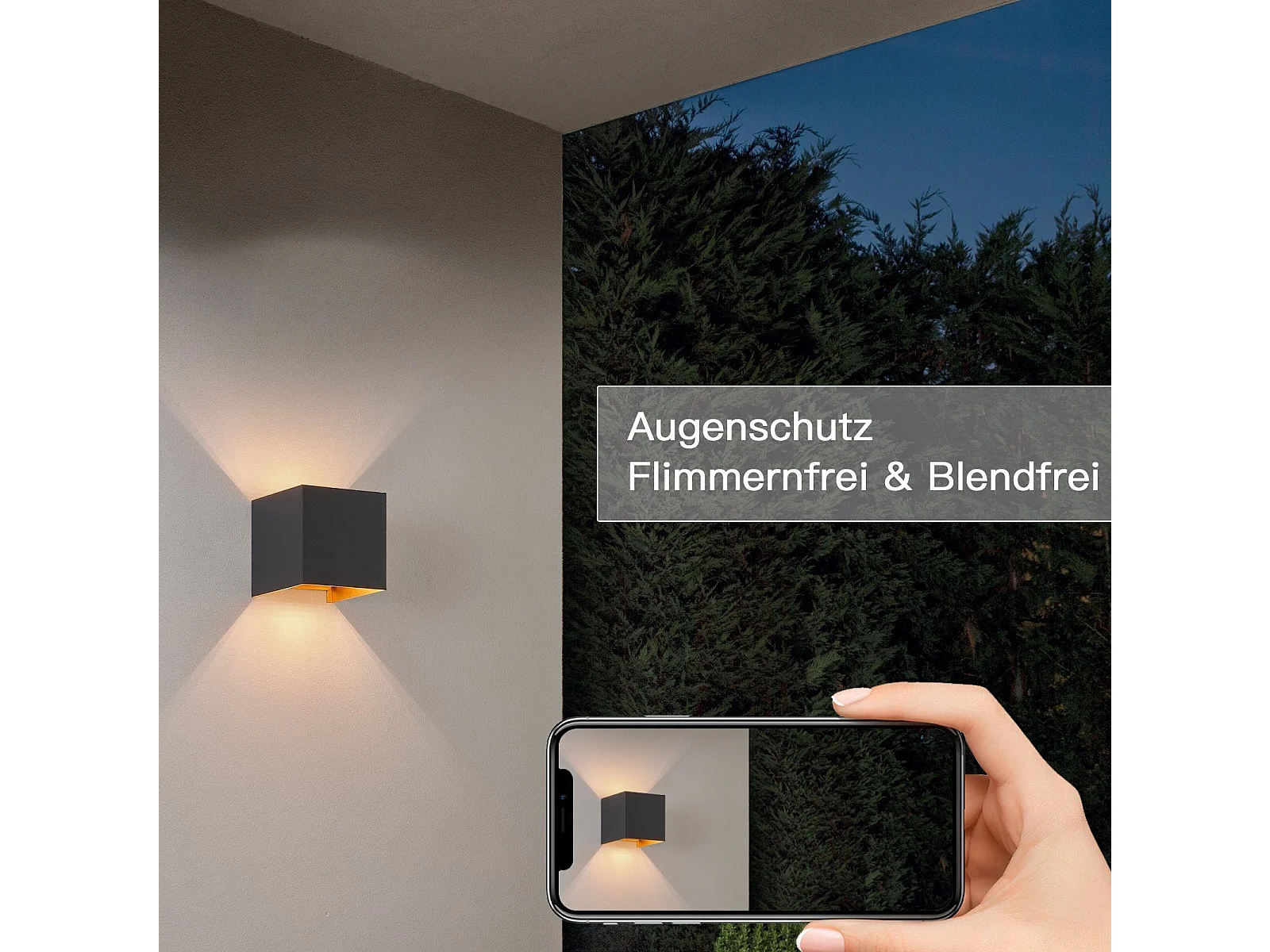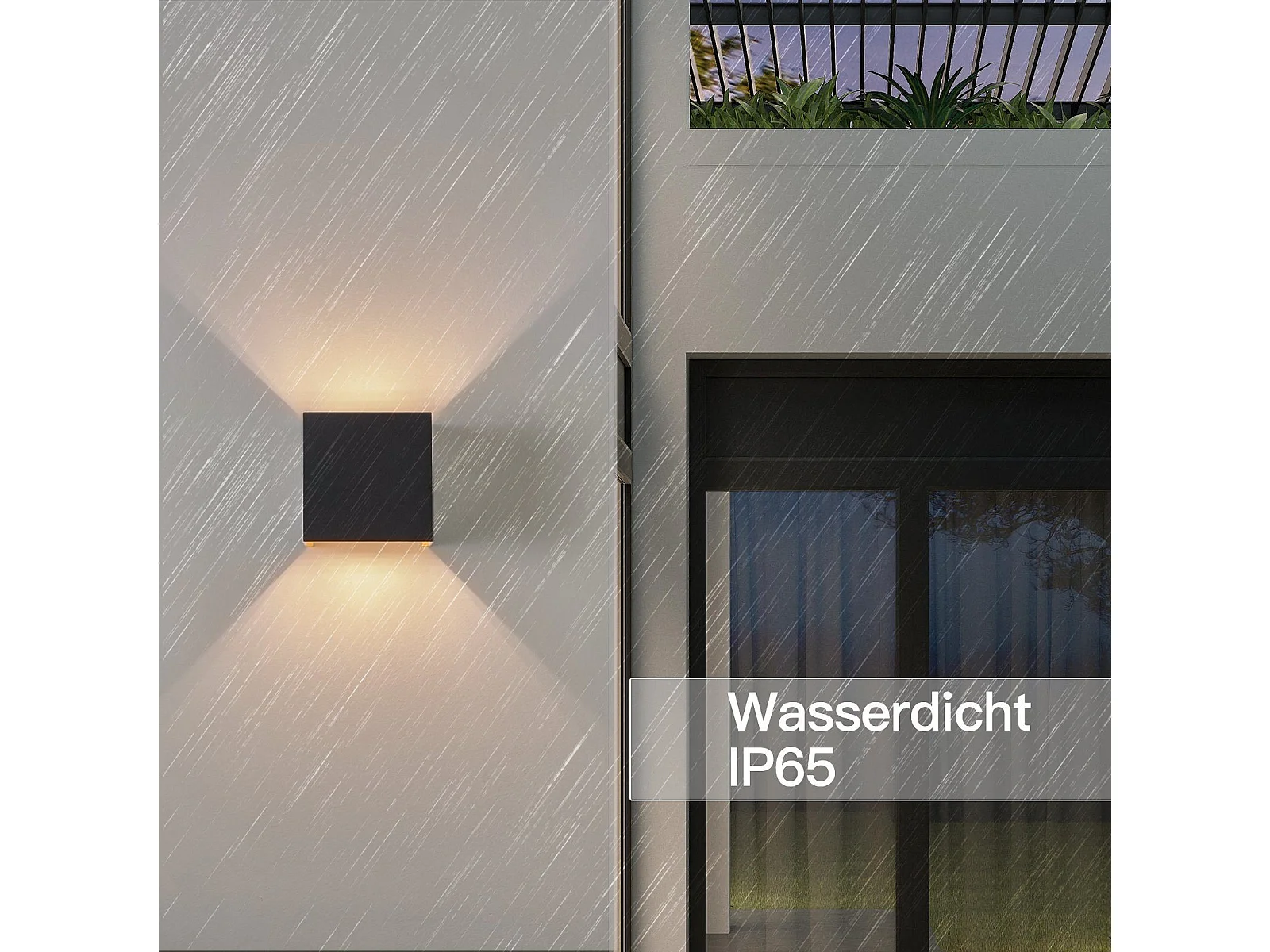 NETTLIFE Set van 2 buiten- en binnenwand LED - plakken: zwart muurverlichting, buitenlamp, huiswand, 5 W, IP65, warm wit 3000 K.