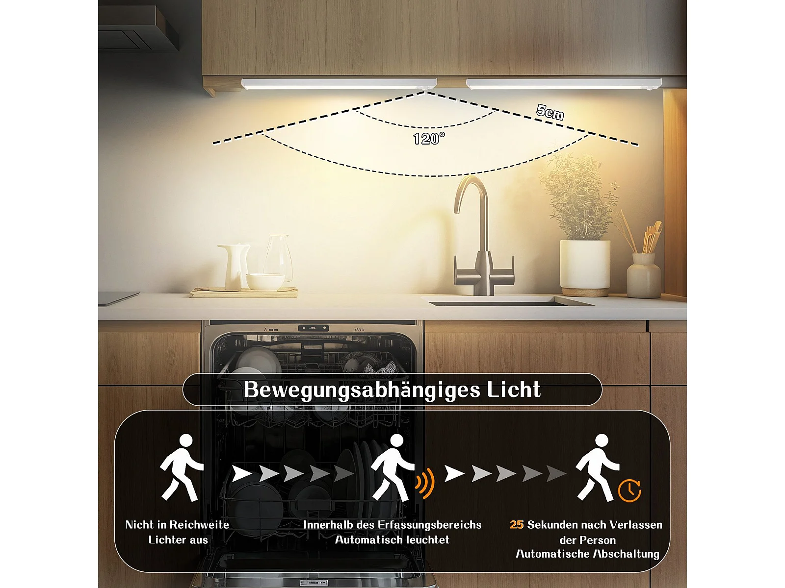NETTLIFE LED-onderkastverlichting met bewegingssensor, USB-oplaadbaar, 1500 mAh, ideaal voor kast, gang of garderobe