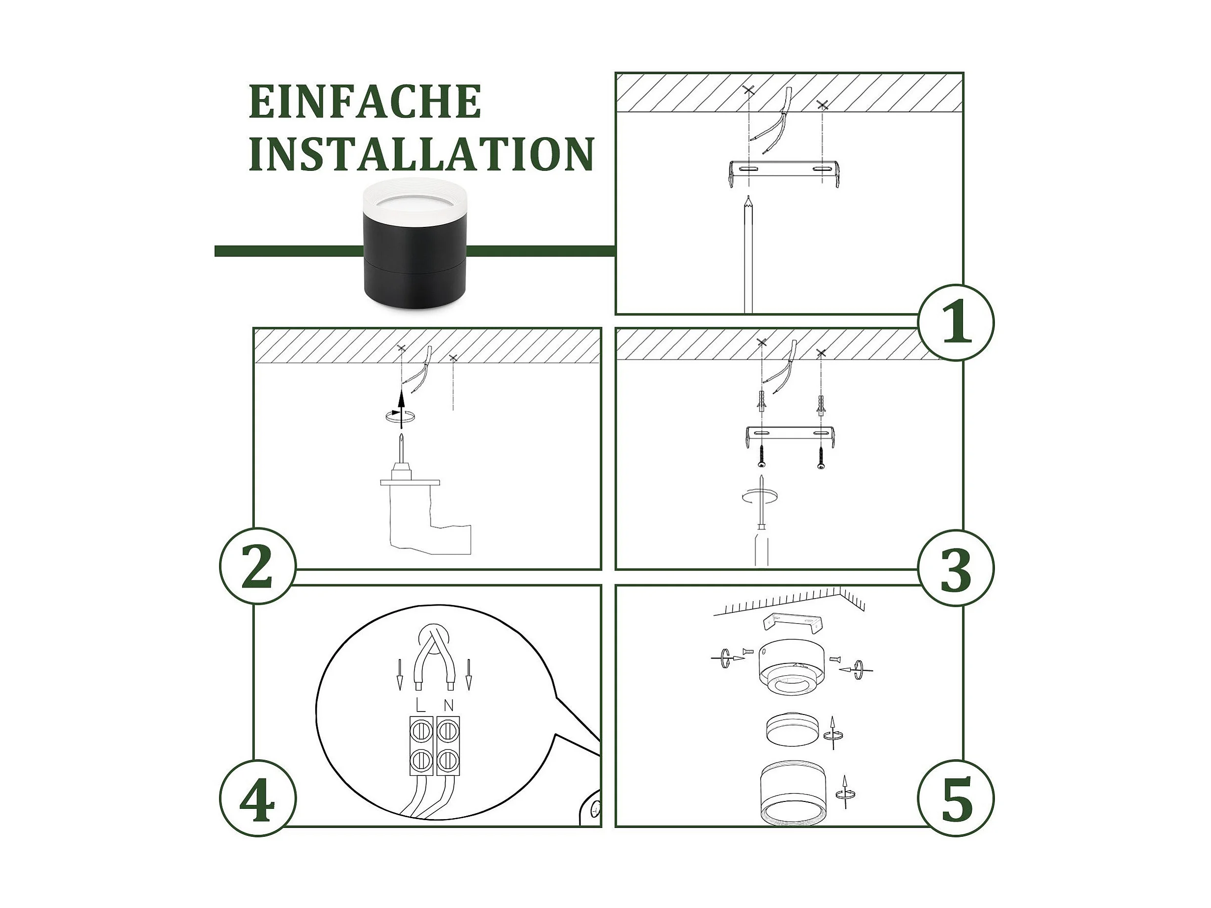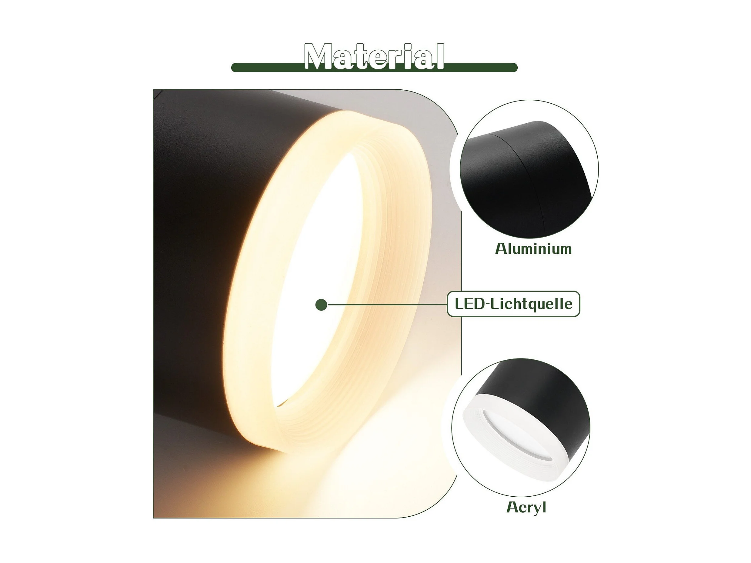 NETTLIFE LED opbouwspot ronde plafondspot zwart 5W opbouwspot klein acryl
