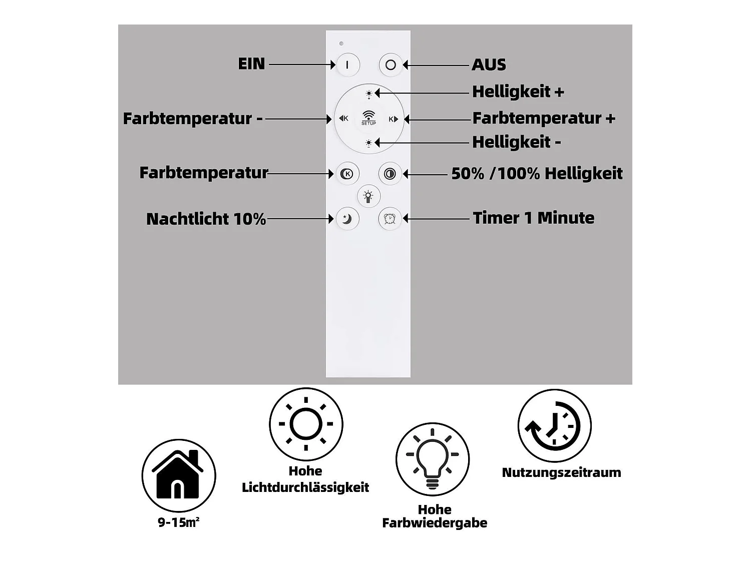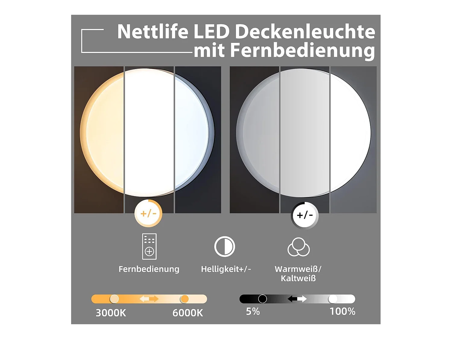 NETTLIFE LED Plafondlamp - Zwart - Rond - Modern - Dimbaar 3000-6000K - 36W Woonkamerlamp met Afstandsbediening - voor Slaapkamer | Keuken | Hal | Eetkamer