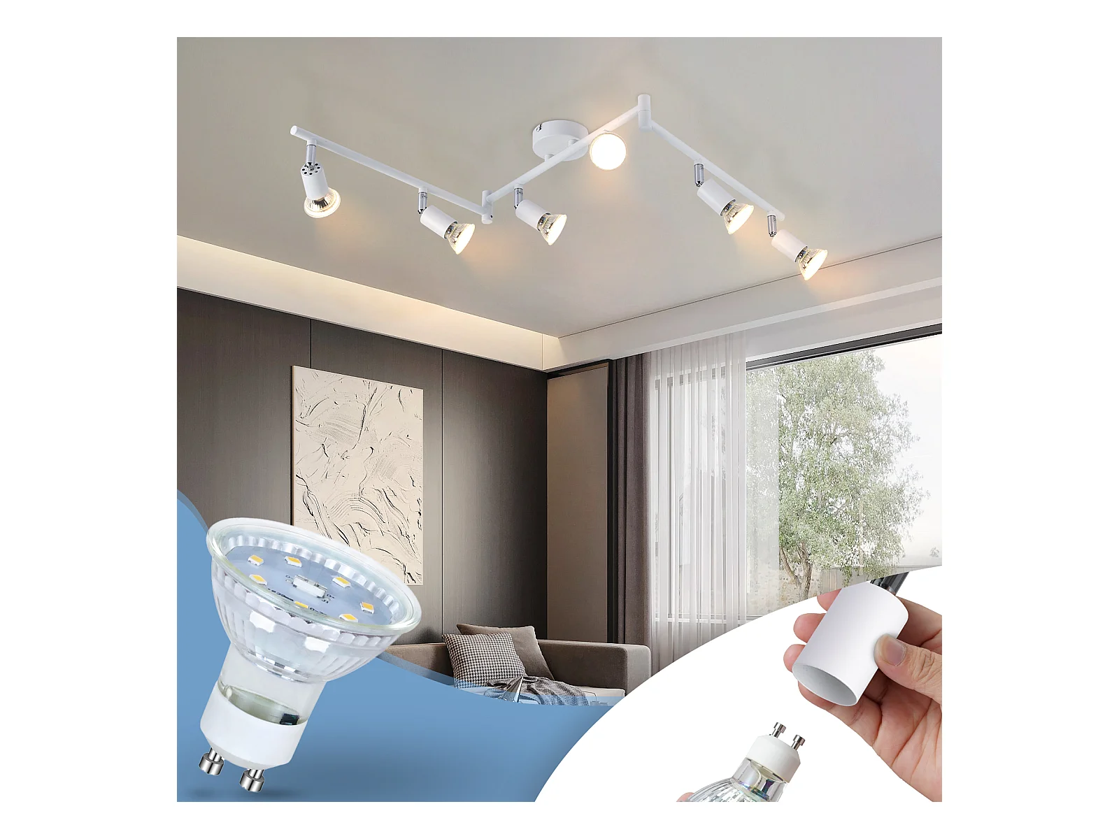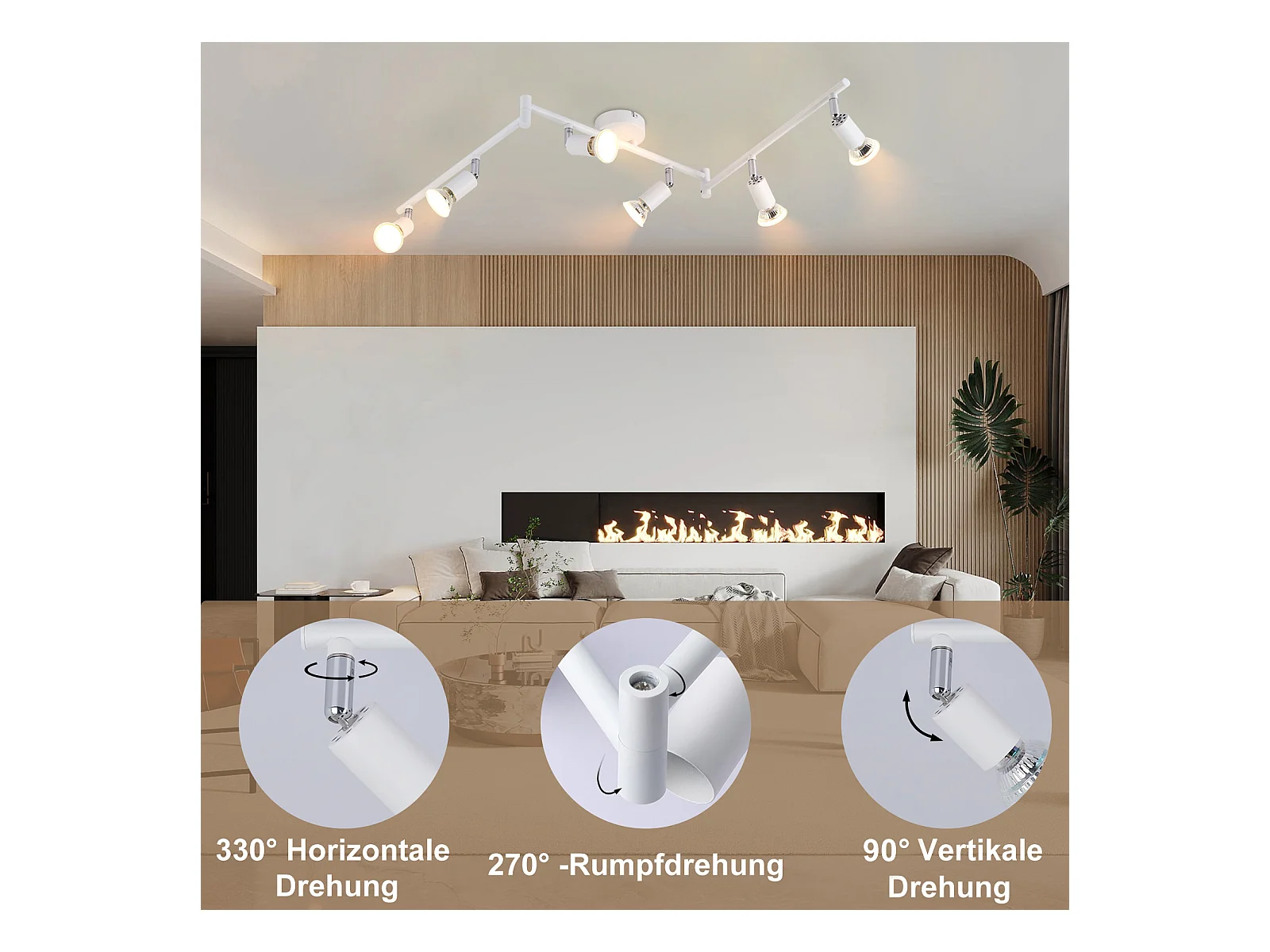 NETTLIFE Vintage E14 Plafondspot Binnen 350° Verstelbaar Wit Draaibaar 350° Industrieel 6 Vlammen