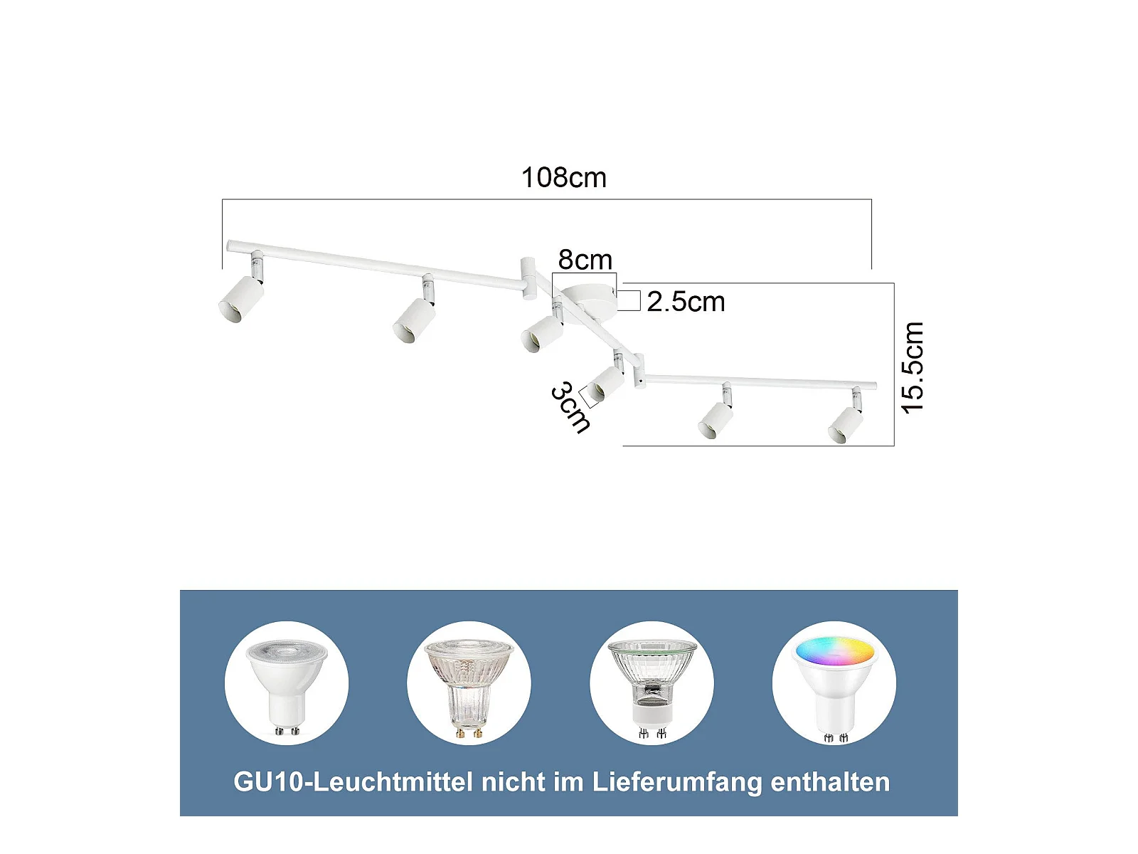 NETTLIFE Opbouwspot 6-lichts GU10 Fitting wit Metaal draaibar Plafondspot L 108cm Vintage Plafondlamp voor Slaapkamer | Hal | Woonkamer | Keuken Zonder Lichtborn