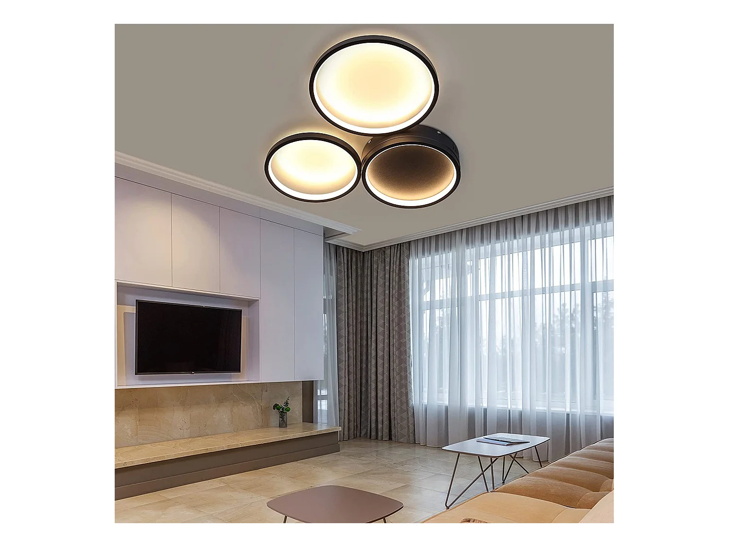 NETTLIFE Plafondlamp LED Zwart Ringe Design 3-Lichts Metaal 3000K Warm wit Licht Moderne Plafondverlichting 22W voor Woonkamer | Slaapkamer | Eetkamer