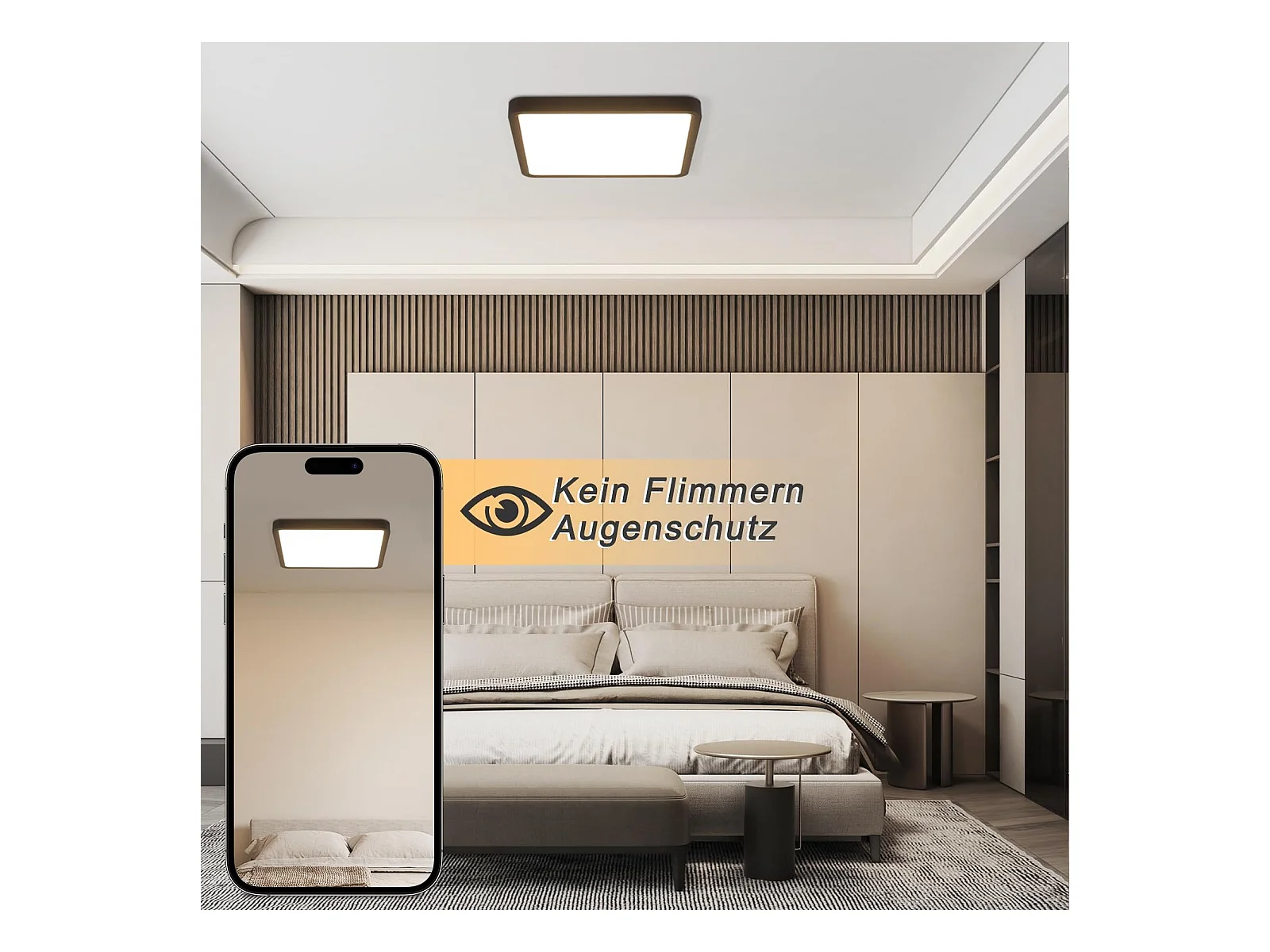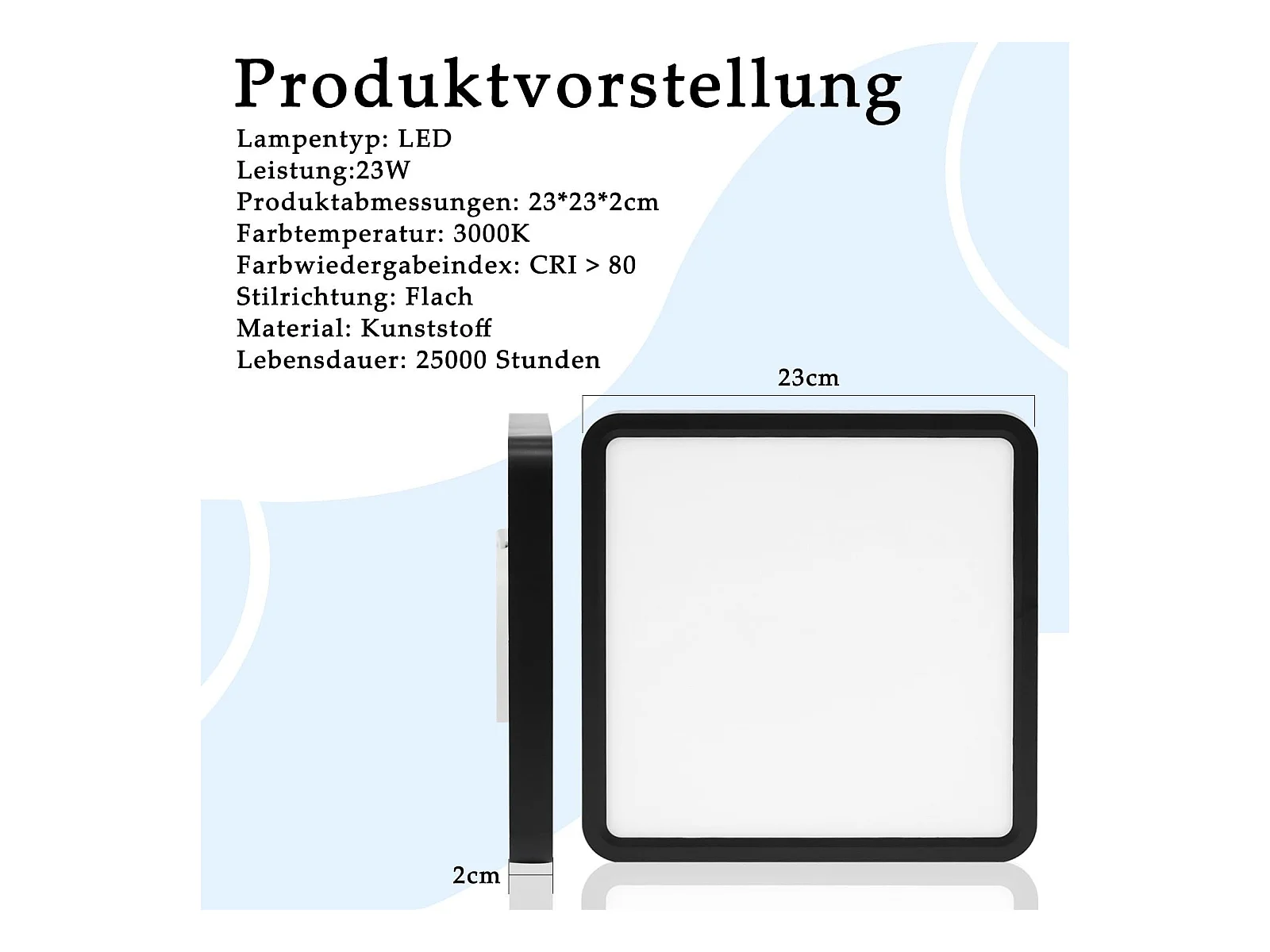 NETTLIFE Plafondlamp - LED - Ø 23 cm - Zwart plafonniére - 23W - warmwit licht - rechthoek