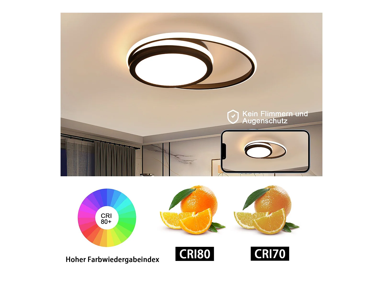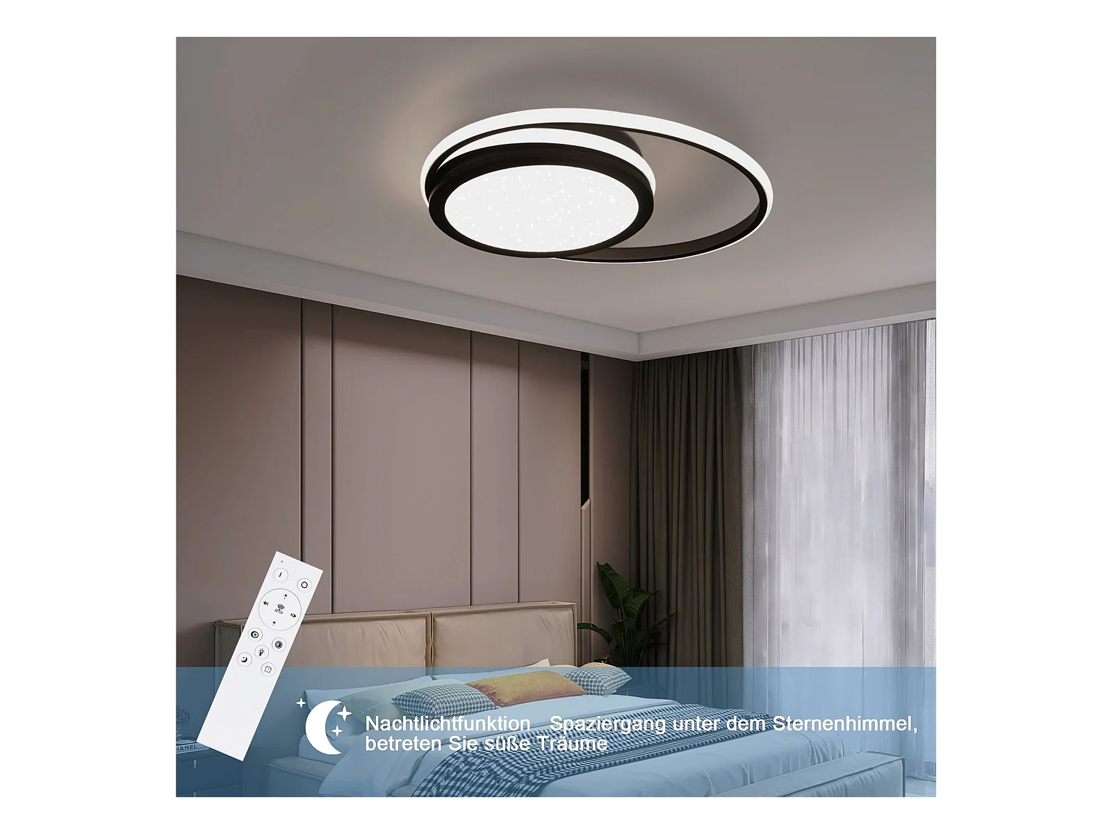 NETTLIFE LED plafondlamp woonkamer dimbaar met afstandsbediening zwart 56 W LED vast geïntegreerd