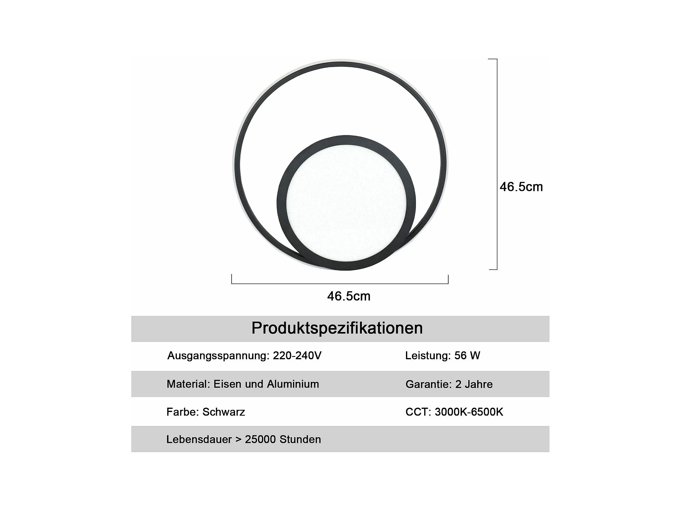 NETTLIFE Plafondlamp LED Zwart rond Metaal 42W Dimbaar met Afstandsbediening Moderne Plafondverlichting voor Woonkamer | Slaapkamer | Studeerkamer 44cm