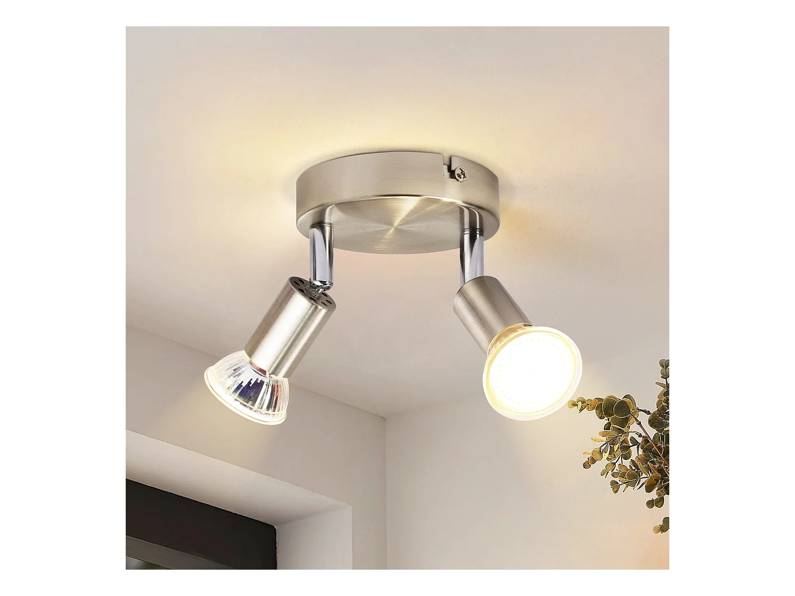NETTLIFE Opbouwspot - rond - 2-Lichts - GU10 Fitting - nikkel - Moderne Plafondlamp - Plafondspot - voor Hal | Slaafkamer | Kantoor | Woonkamer - Zonder Lichtborn
