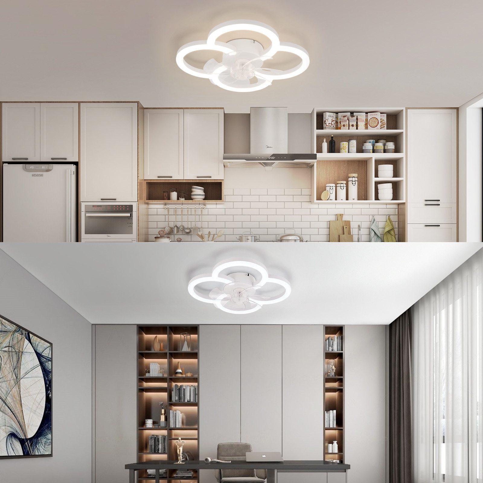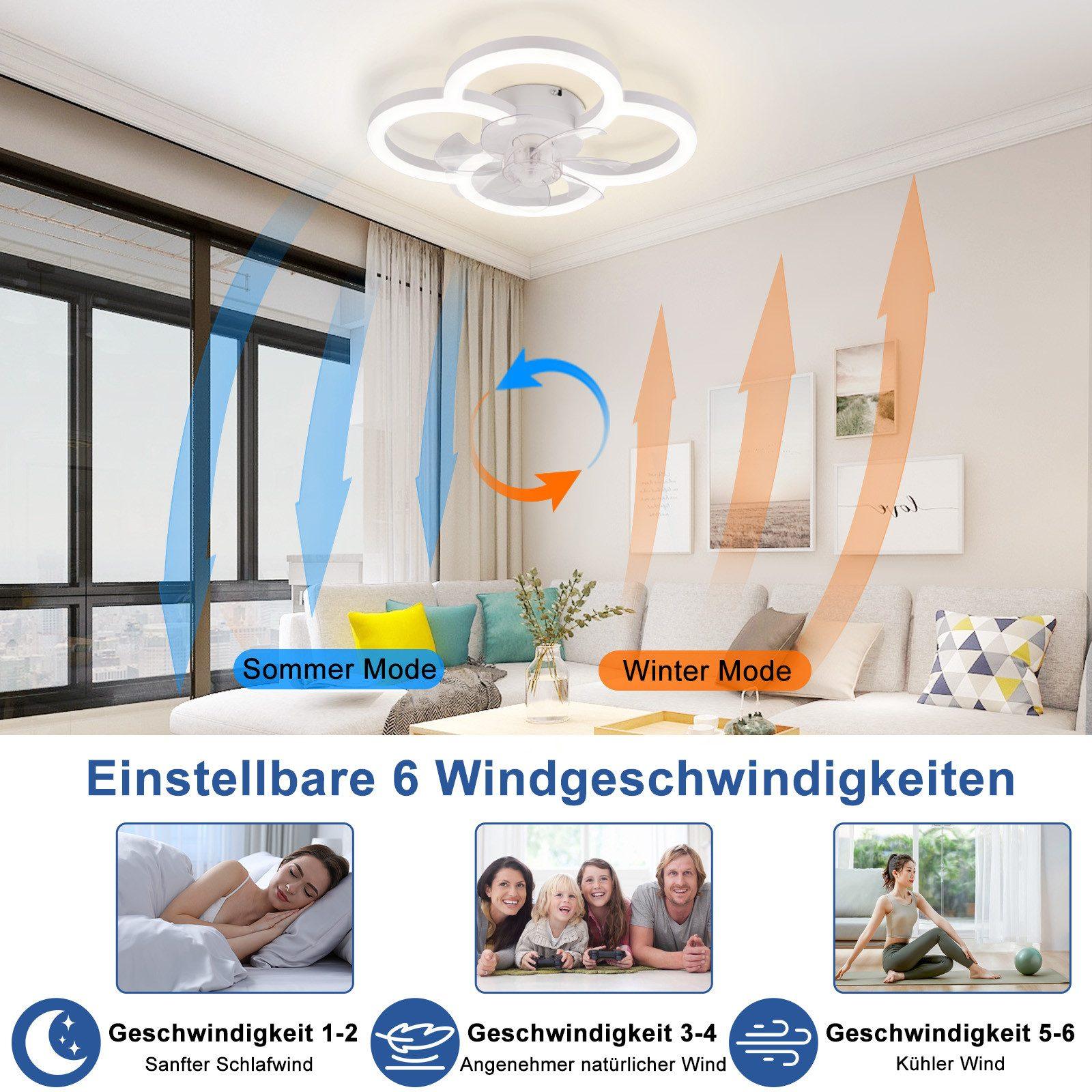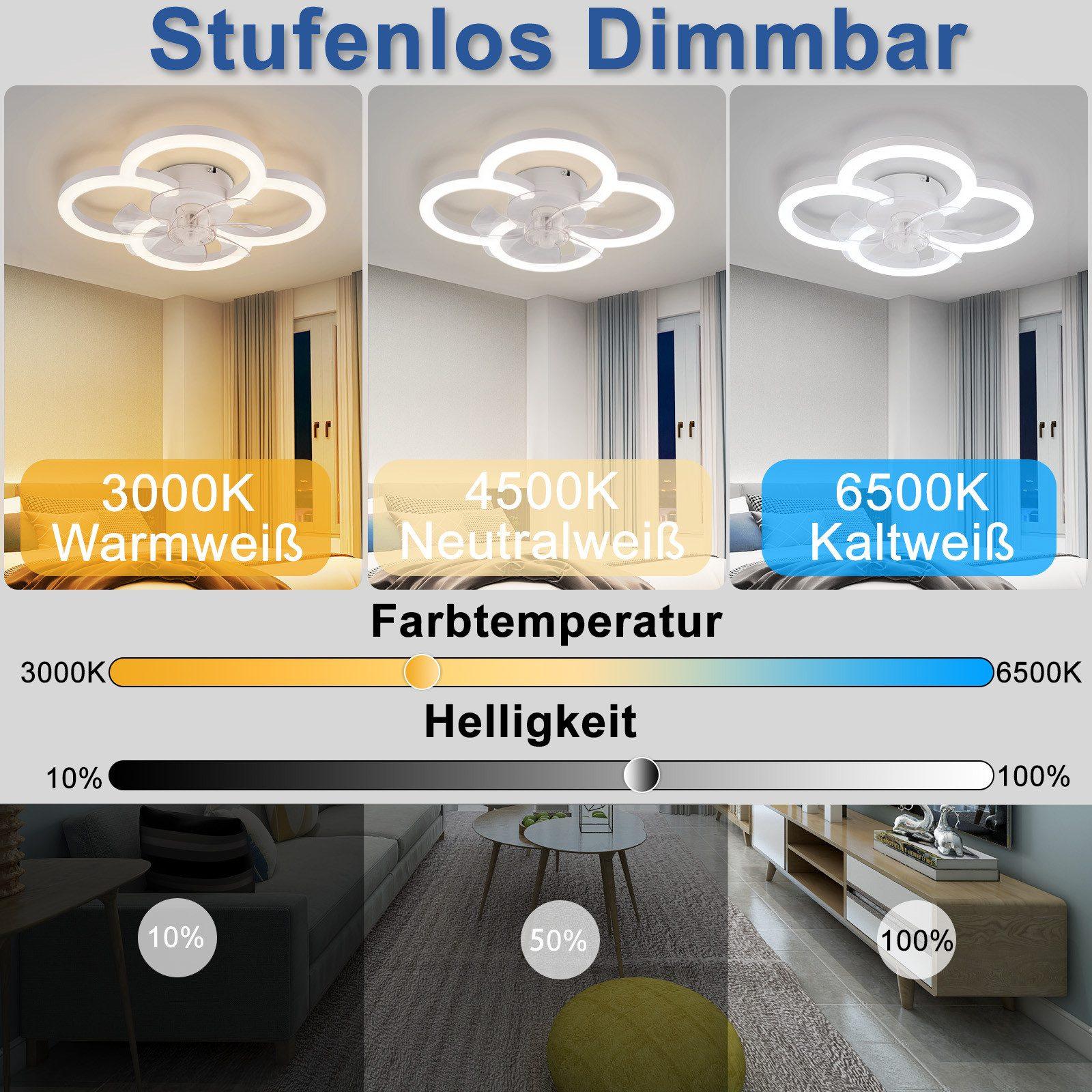 NETTLIFE LED-plafondventilator met stille verlichting en afstandsbediening, dimbare plafondlamp, 6-snelheidstimer, wit
