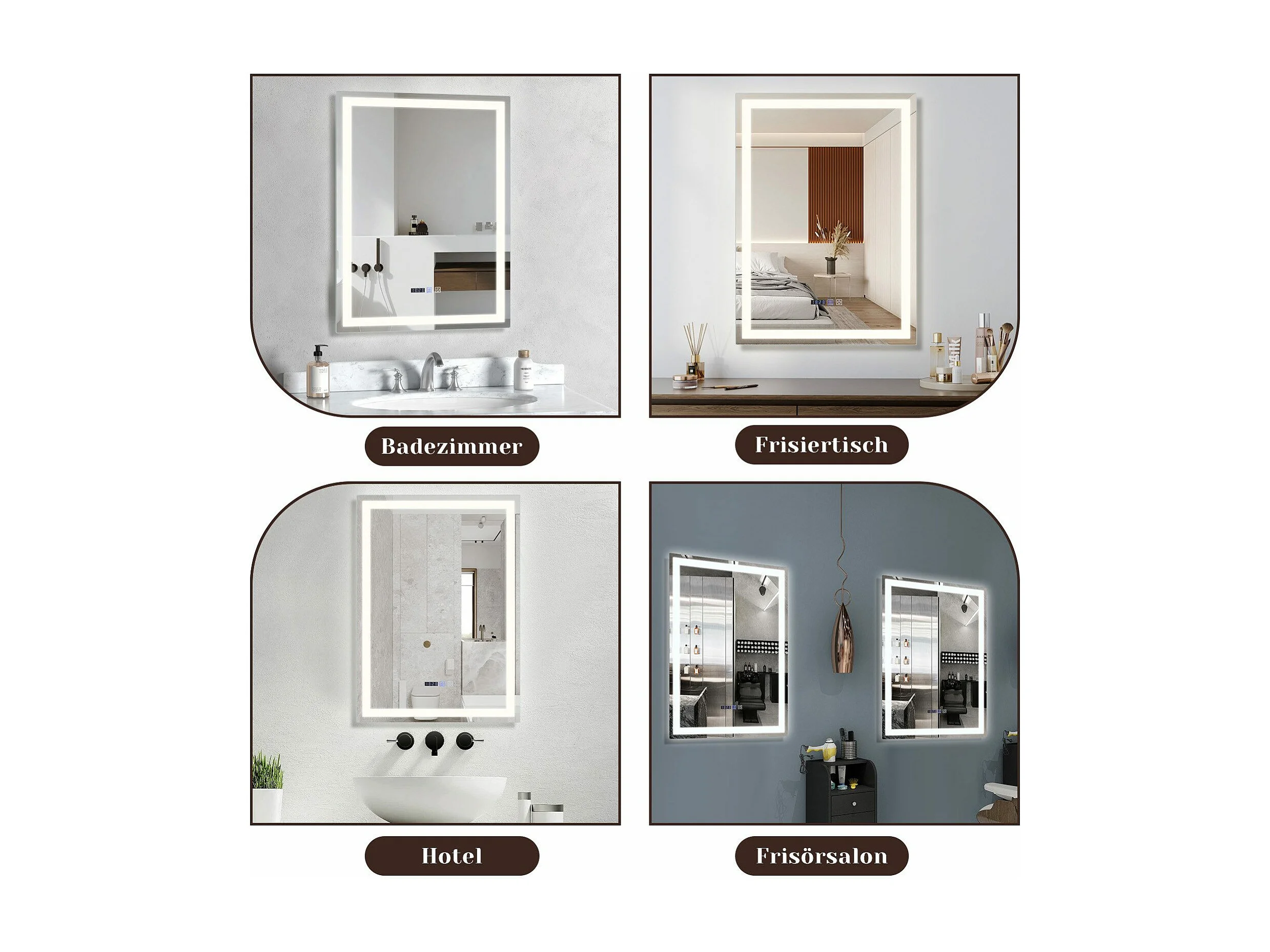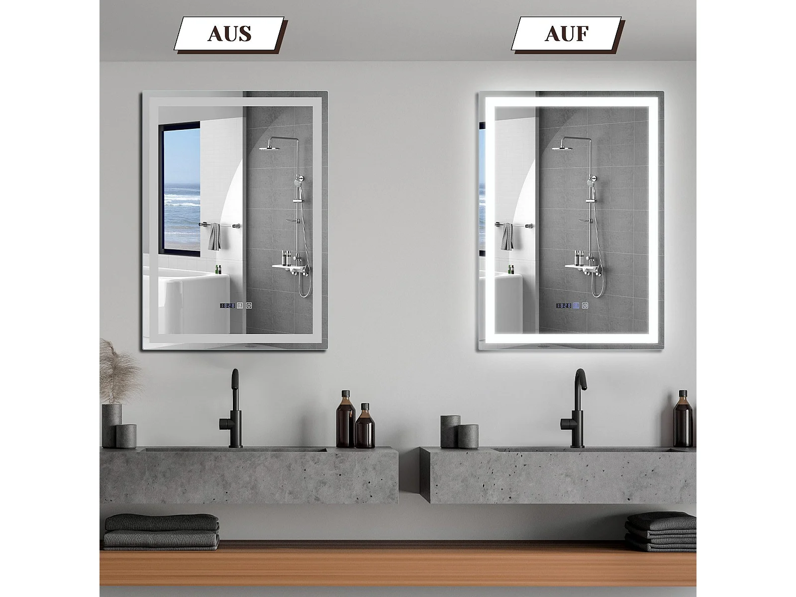 NETTLIFE Miroir lumineux salle de bain - 60x80 cm LED, muurschildering, IP44, tactiele onderbreking, horloge, verstelbaar