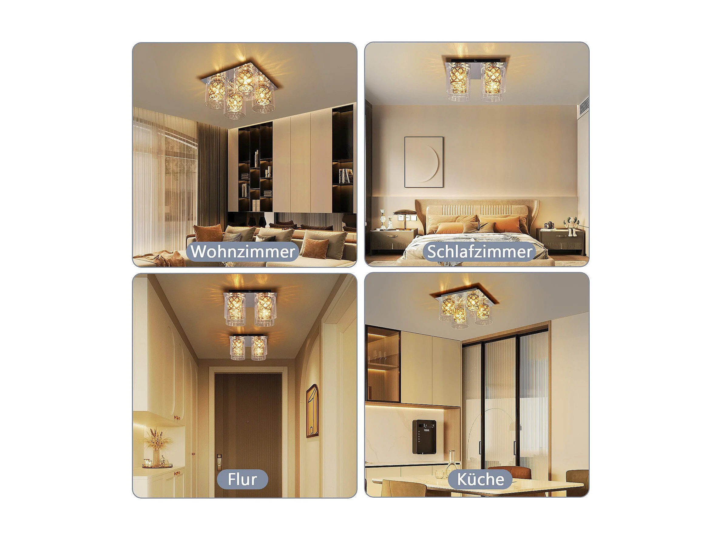 NETTLIFE Plafondlamp G9 - Kristal - 4-Lichts - Moderne slaapkamerlamp - met glazen kap - voor Woonkamer | Keuken | Gang - Max.25W