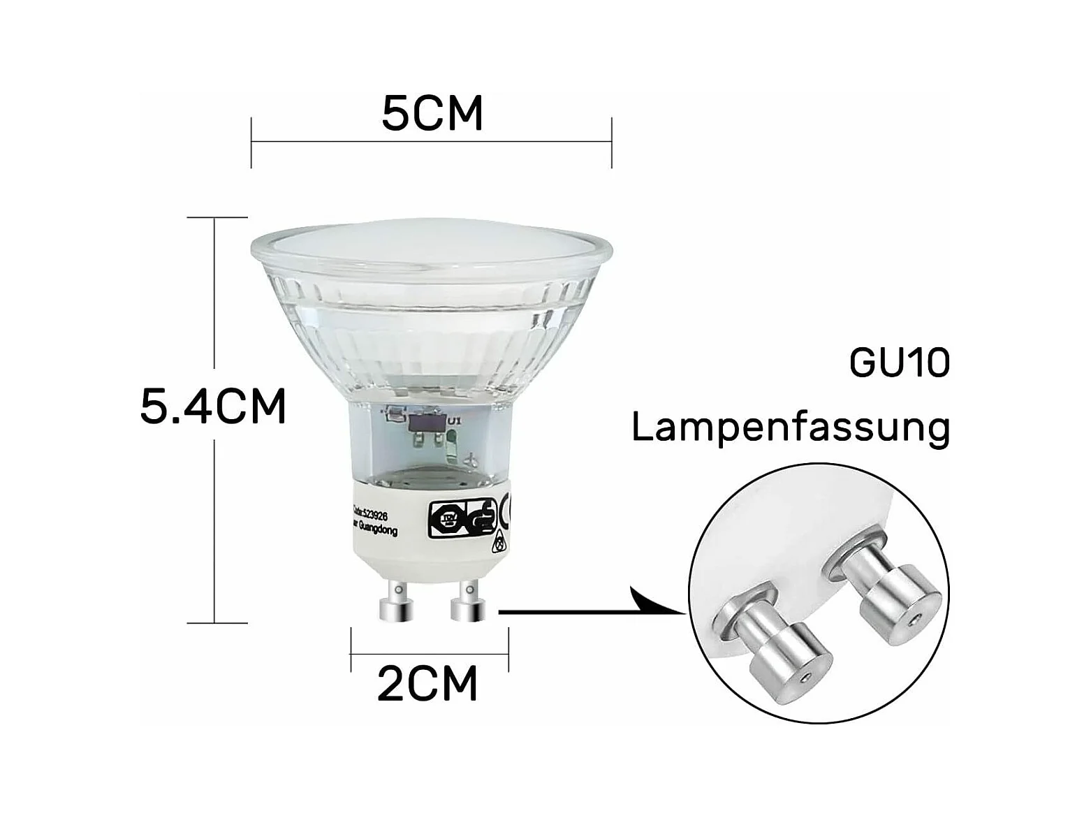 NETTLIFE Set van 10 warm wit LED - GU10 lampen, 5W vervangt 50W, energiebesparing, 3000K, straalhoek 110°, niet dimbaar, incandescent reflektor.