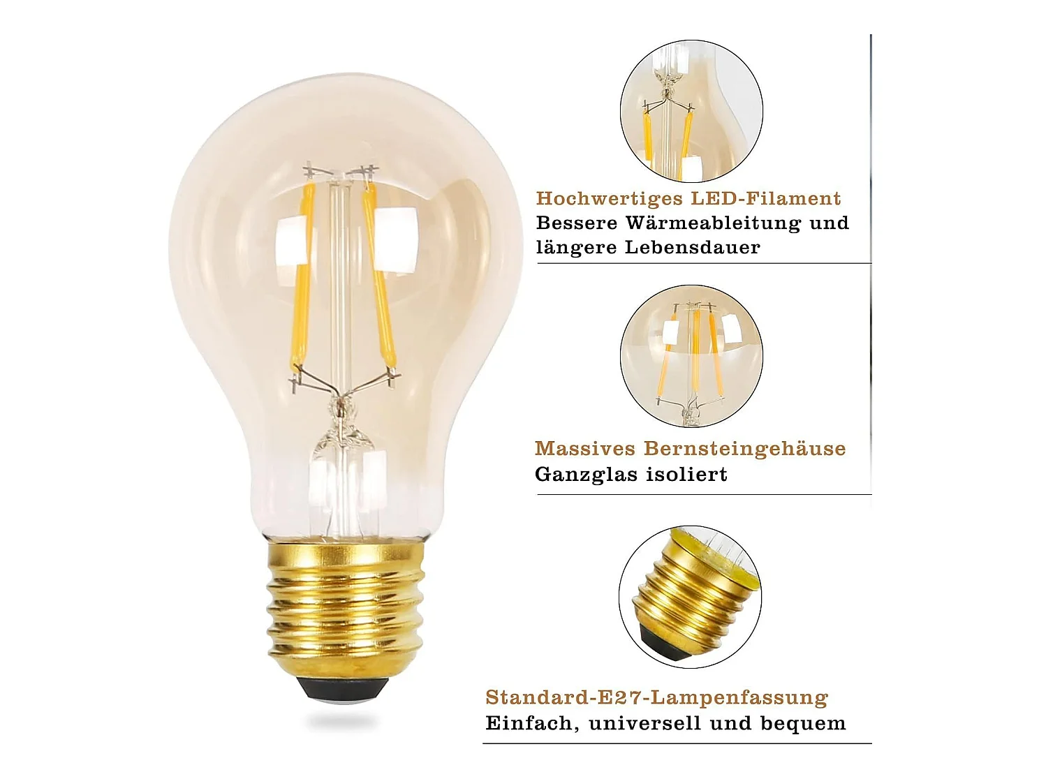 NETTLIFE Pakket van 6 E27 warme witte LED - lampen, vintage - A60, 4W, 2700K, Edison - draadretro, energiebesparende lamp voor huis, café, bar.
