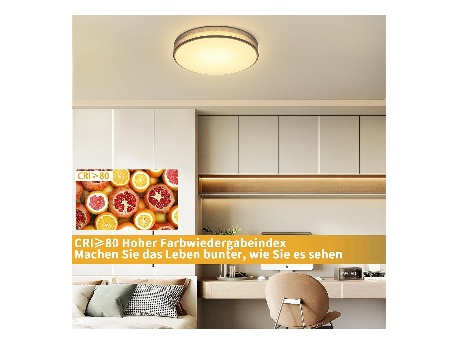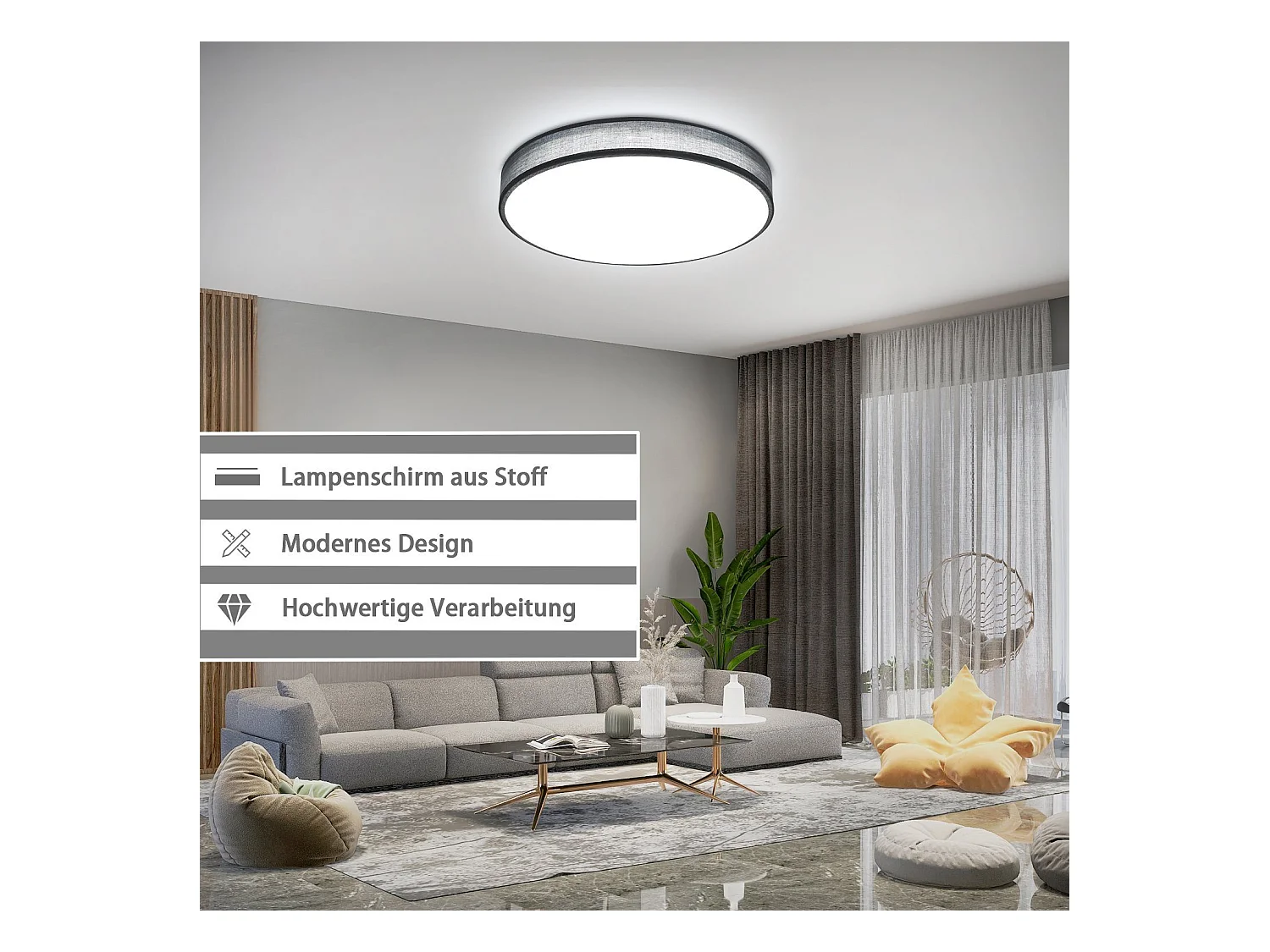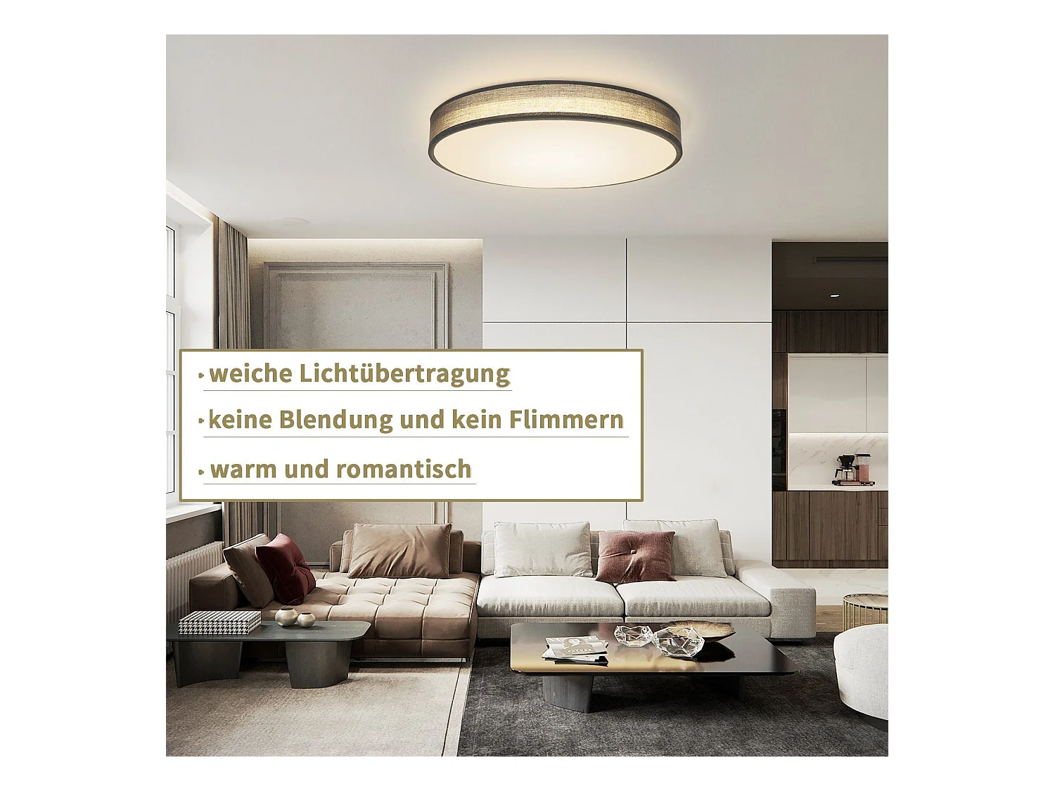 NETTLIFE Plafondlamp LED 38 cm Dimbaar 3000-6500K grijs met Stoffen Lampenkap Modern met Afstandsbediening rond voor Woonkamer | Slaapkamer | Keuken | Gang 38W