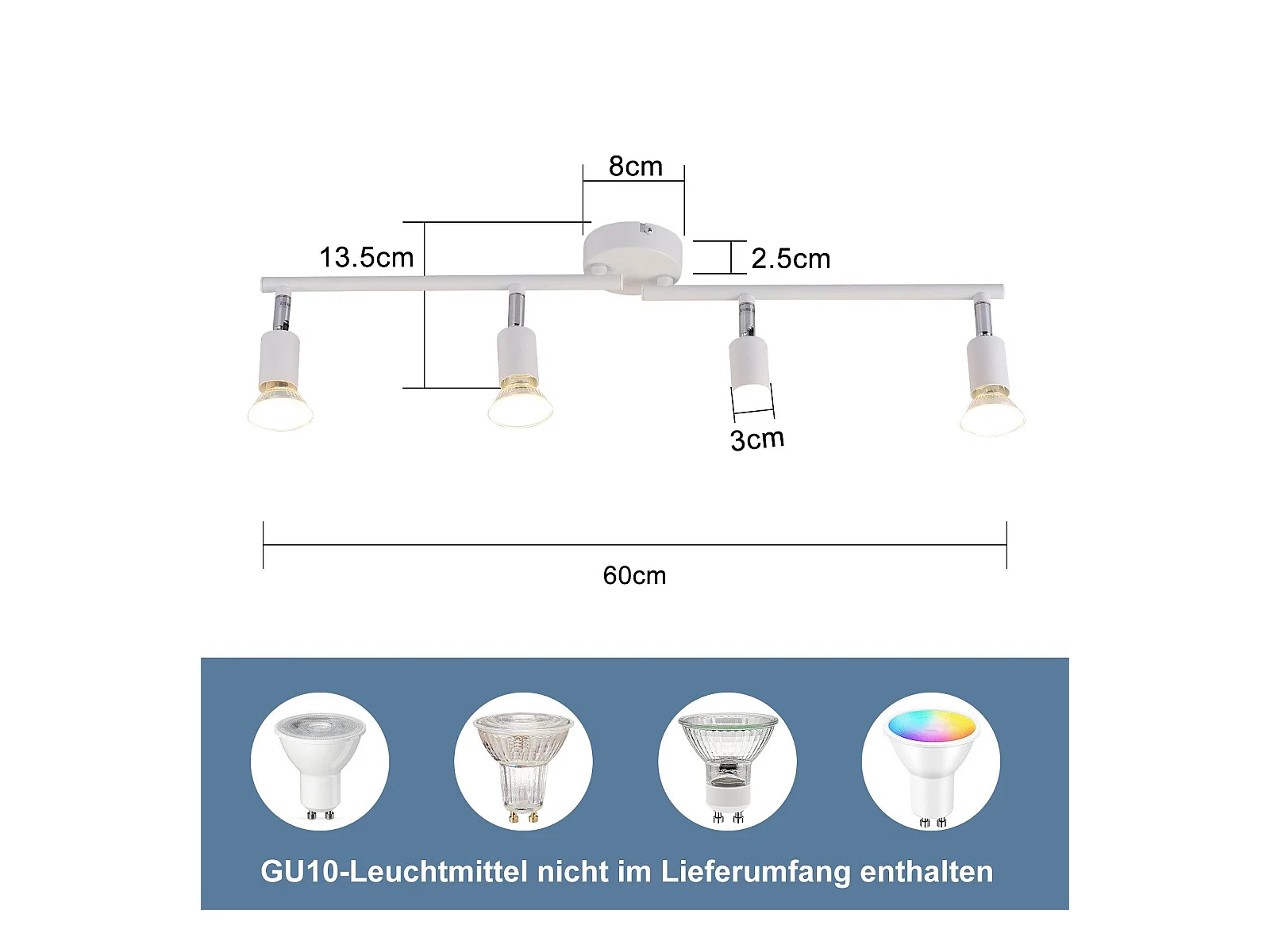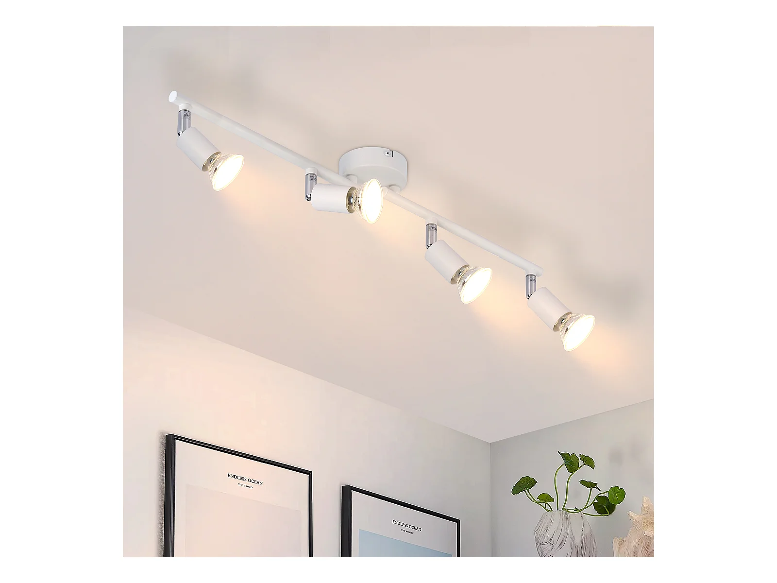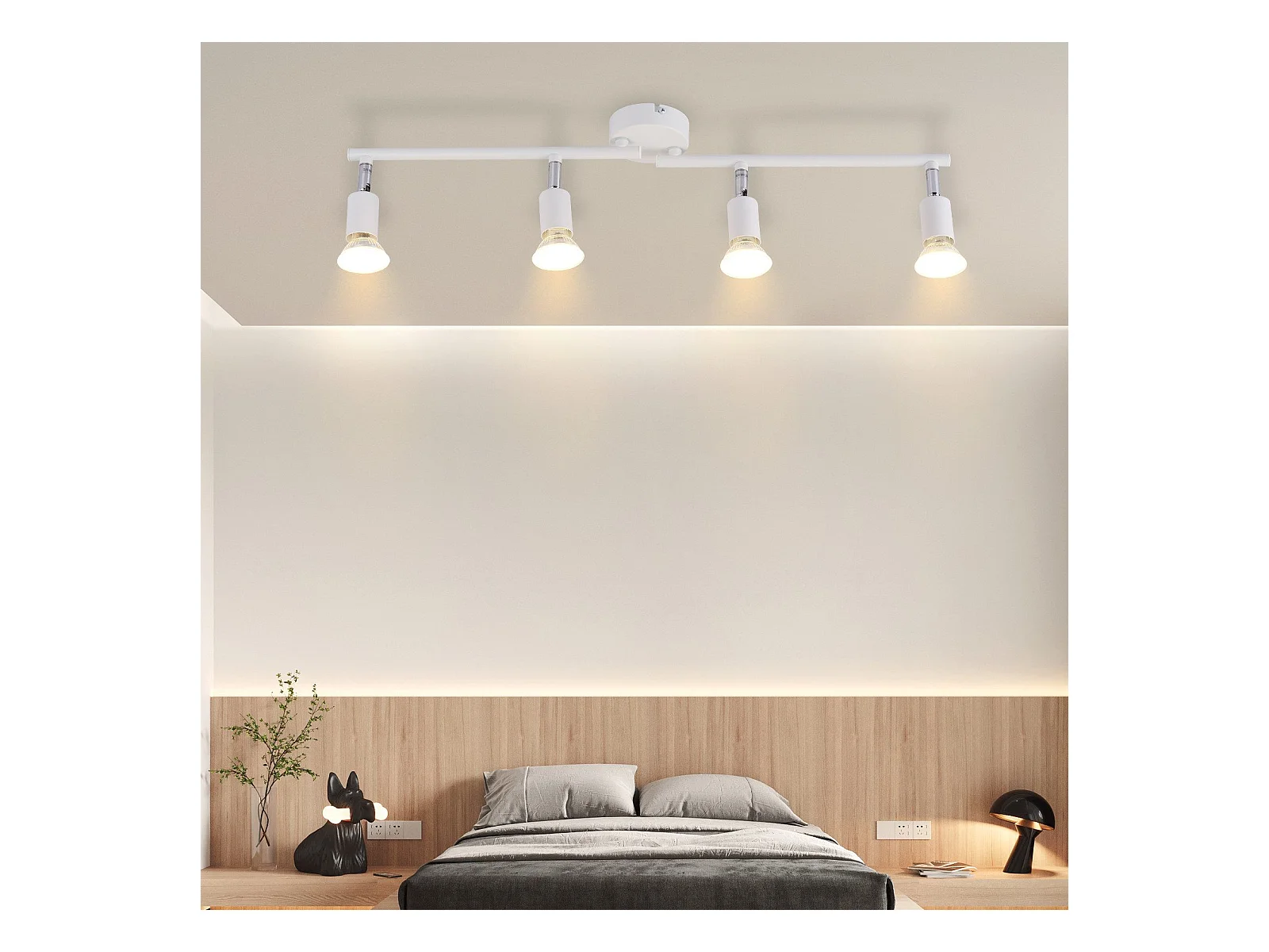 NETTLIFE Opbouwspot 4-lichts GU10 Fitting wit Metaal draaibar Plafondspot L 60cm Vintage Plafondlamp voor Slaapkamer | Hal | Woonkamer | Keuken Zonder Lichtborn
