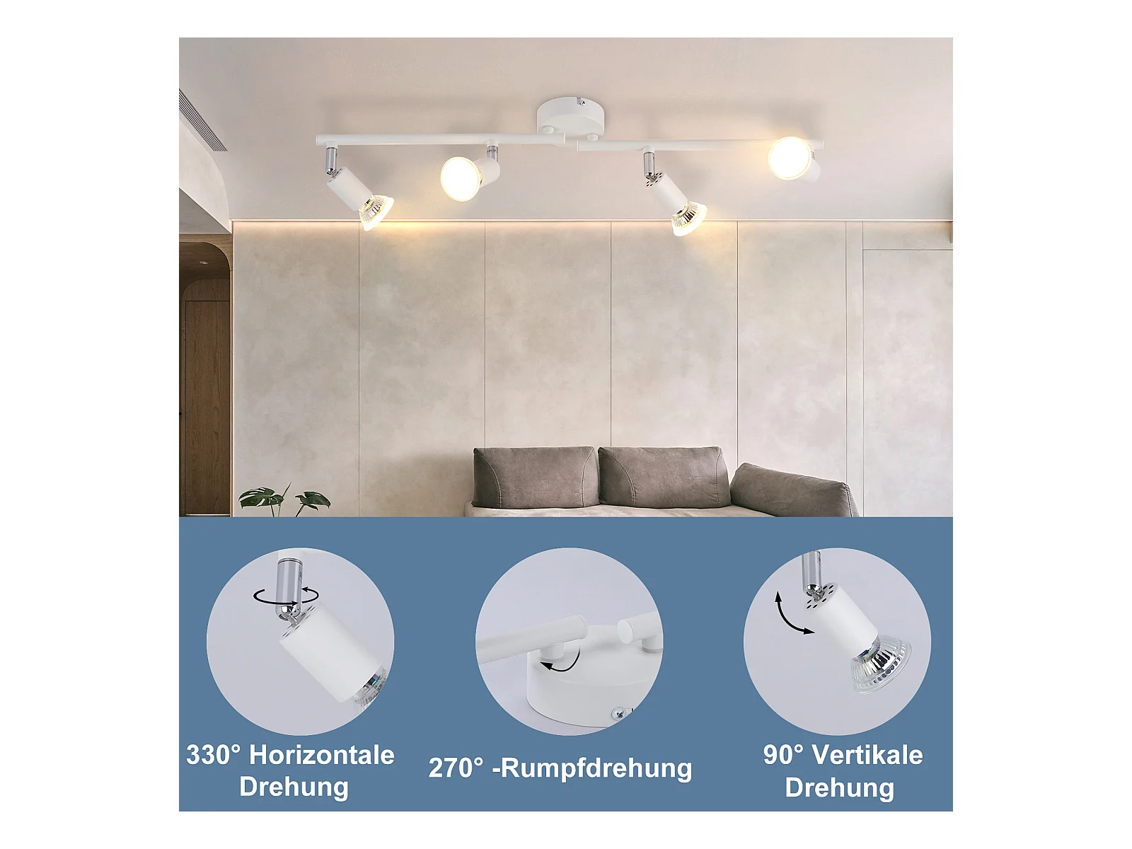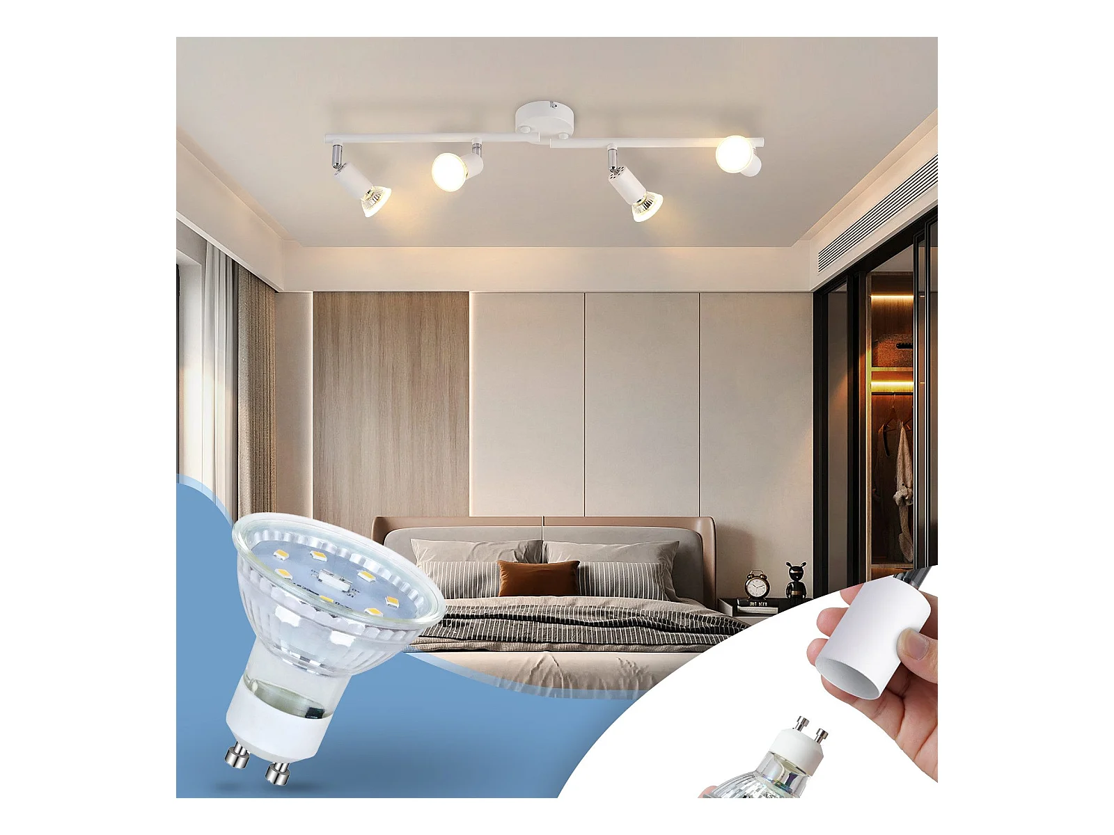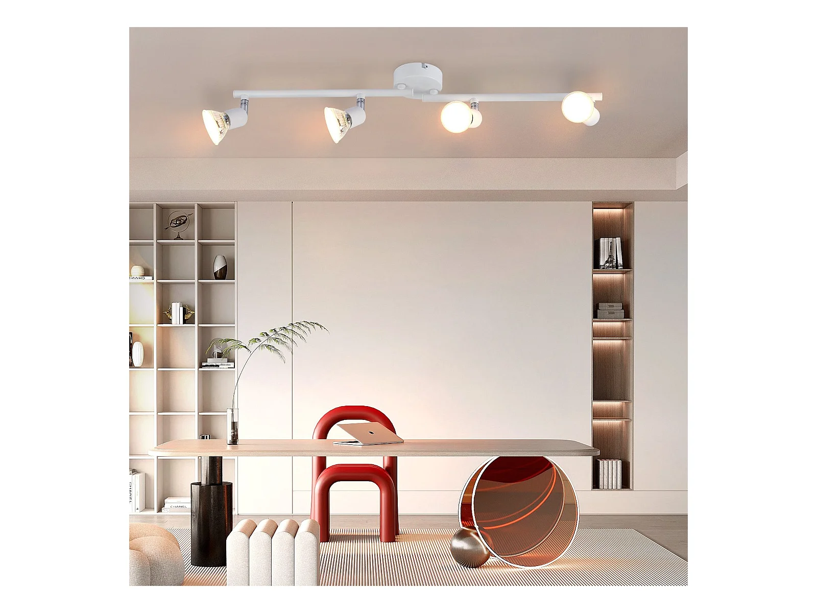 NETTLIFE Opbouwspot 4-lichts GU10 Fitting wit Metaal draaibar Plafondspot L 60cm Vintage Plafondlamp voor Slaapkamer | Hal | Woonkamer | Keuken Zonder Lichtborn